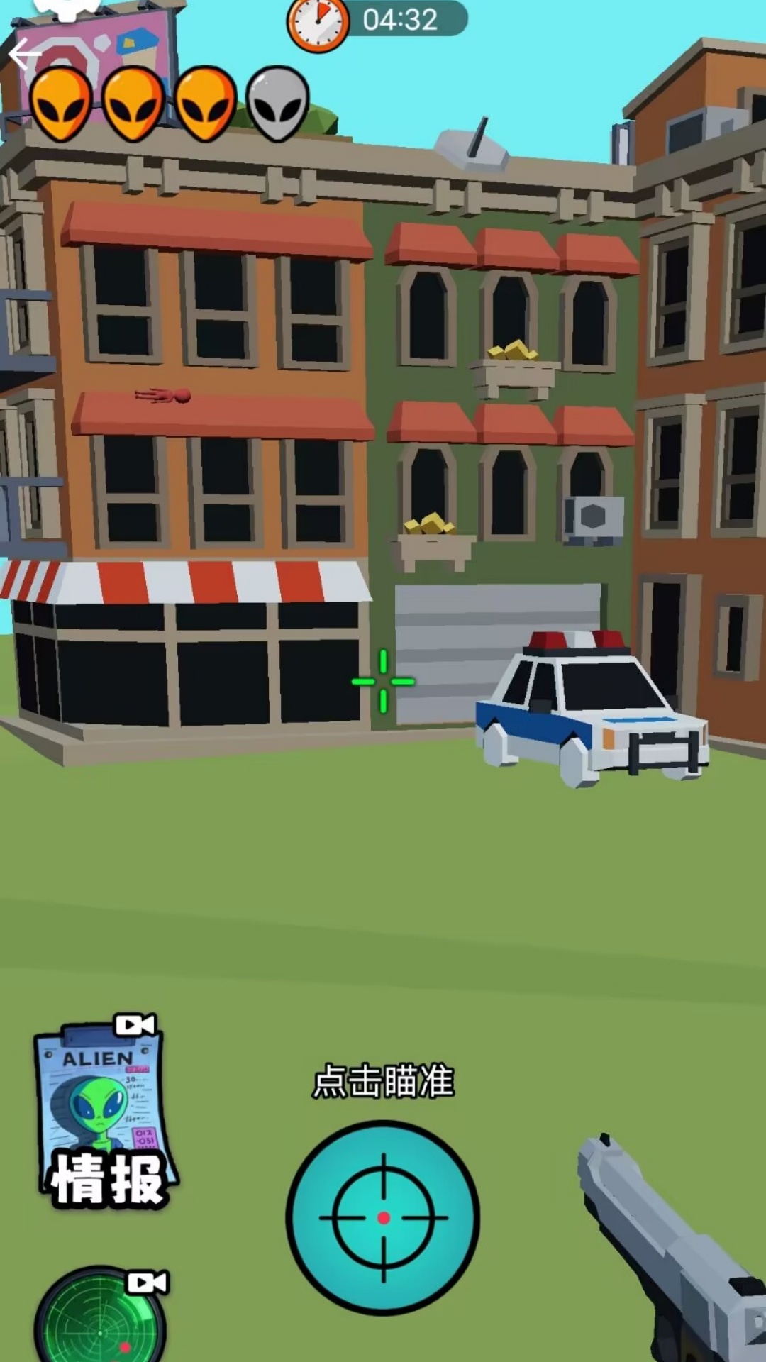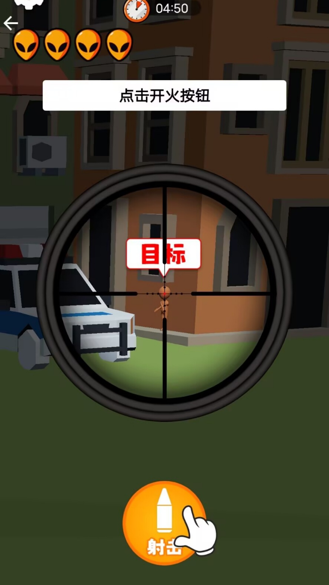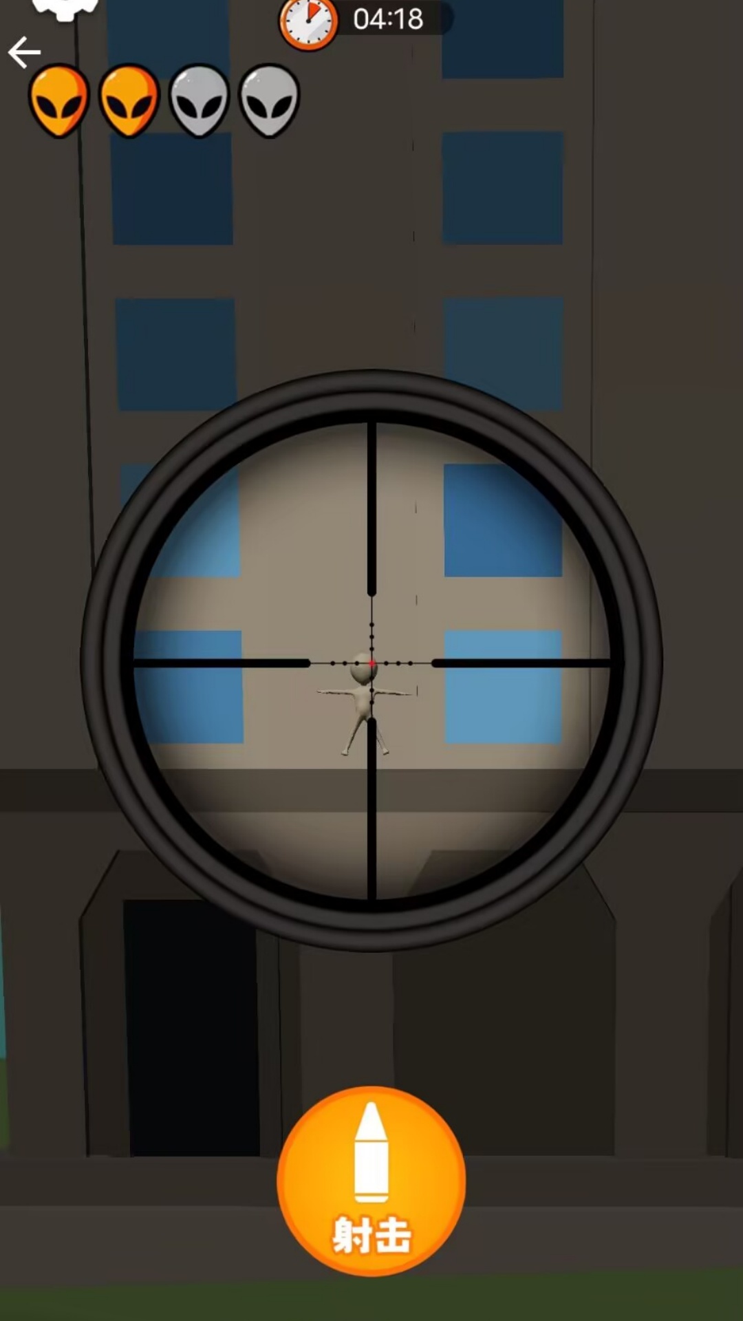2、找到外星人后,点击射击即可对他发起攻击,狙杀关卡全部外星人获得胜利。