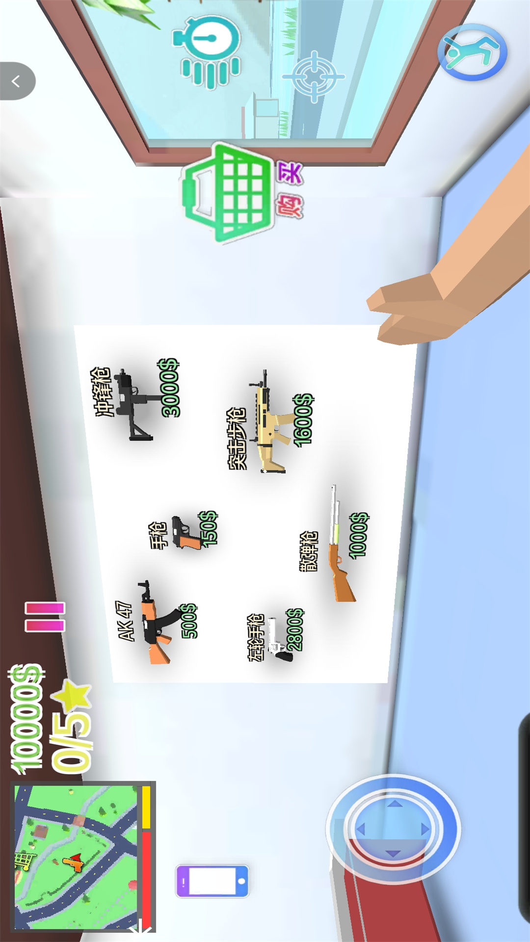 2、通过完成任务和犯罪获取金币,升级武器,从手枪到火箭筒、车辆及角色能力,如射击精准度、奔跑速度;