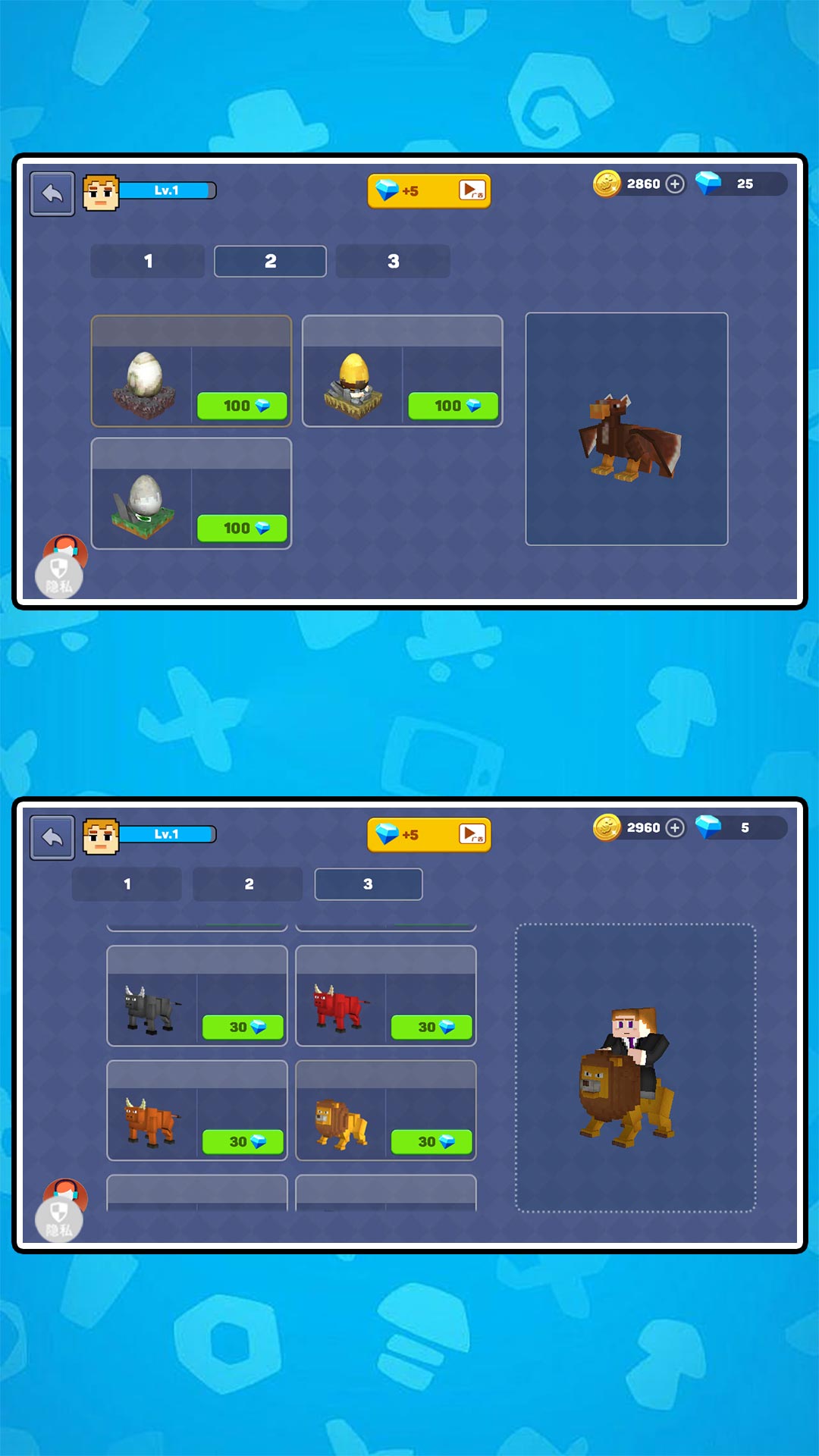 1、你扮演的方块人角色也可以自由定制外观,从发型、服装到配饰,打造独一无二的个人形象;