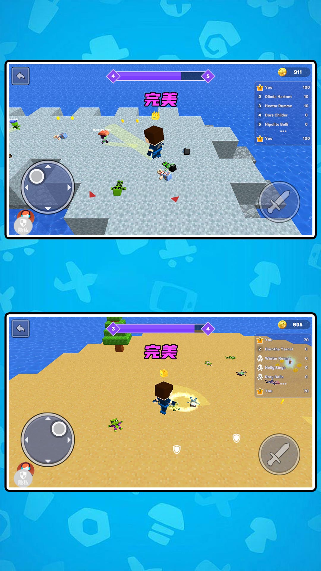 1、你可以进入特定的竞技地图,与其他玩家进行快节奏的方块射击战、近身格斗;