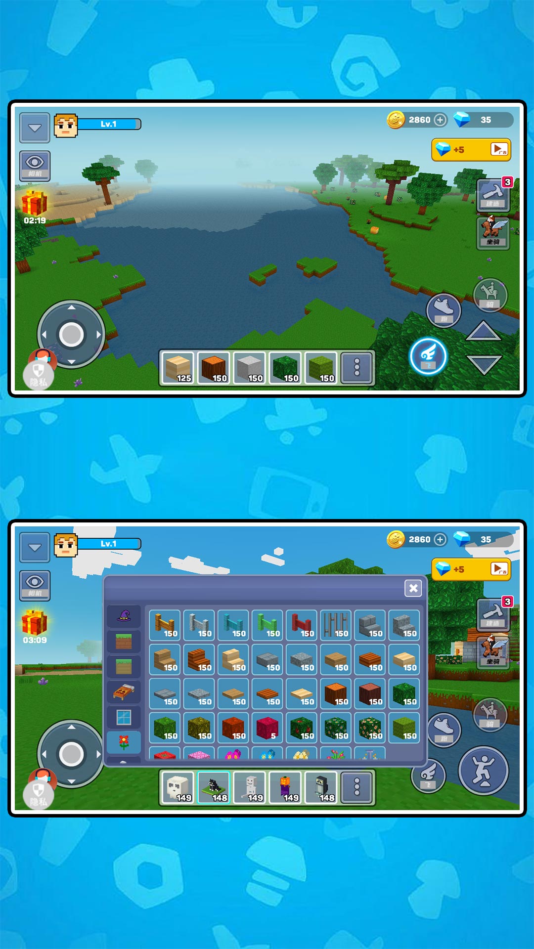 2、随心建造,创意无界:利用这些方块,发挥你天马行空的想象力。从一间遮风避雨的小木屋,到巍峨壮丽的空中城堡;