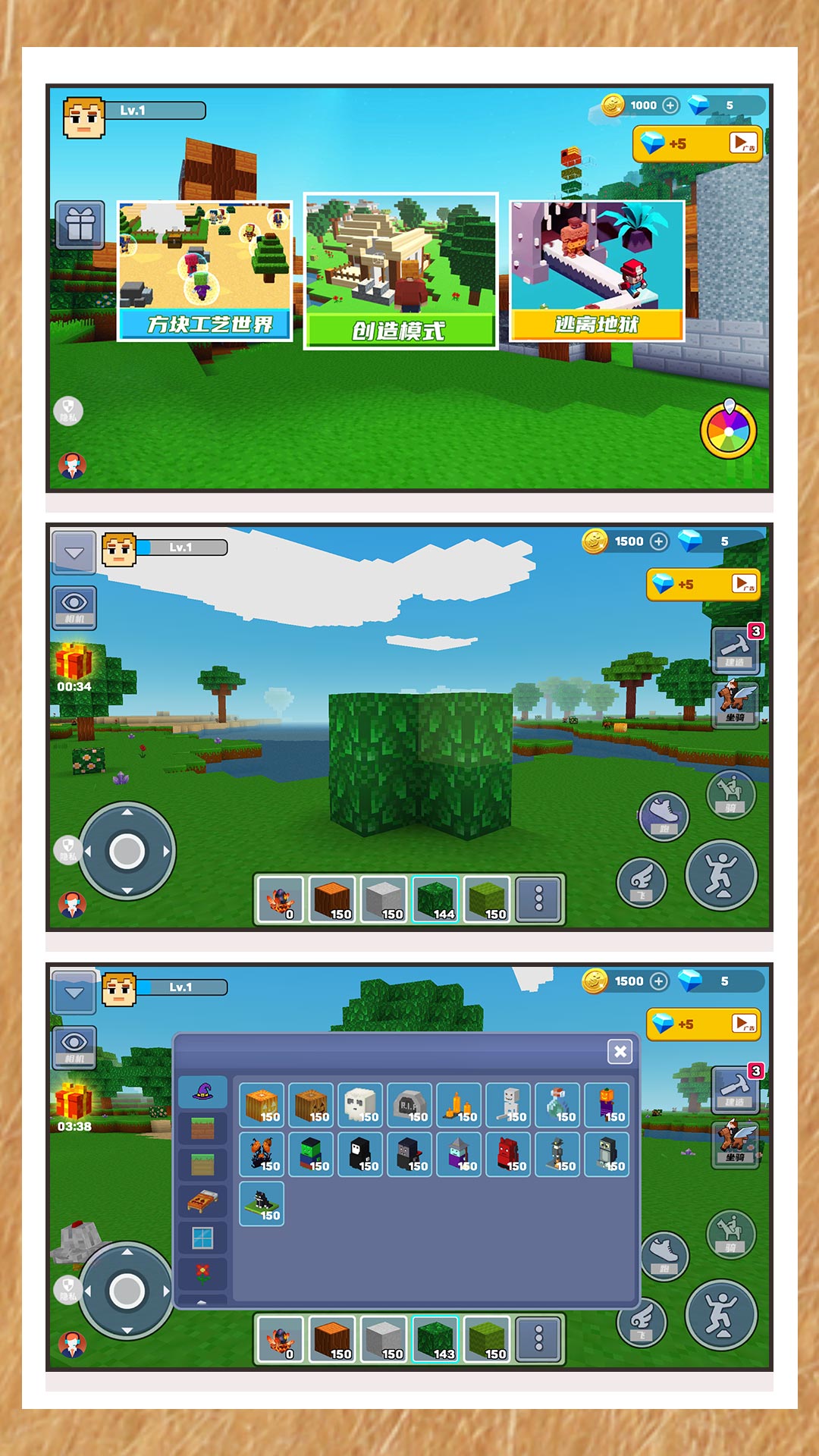 3、比如进入方块工艺世界,你可以不断的探索,移动角色创建;