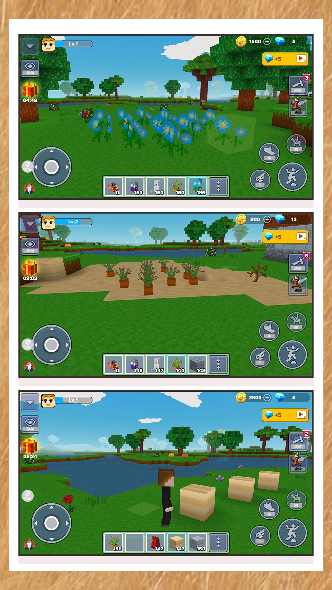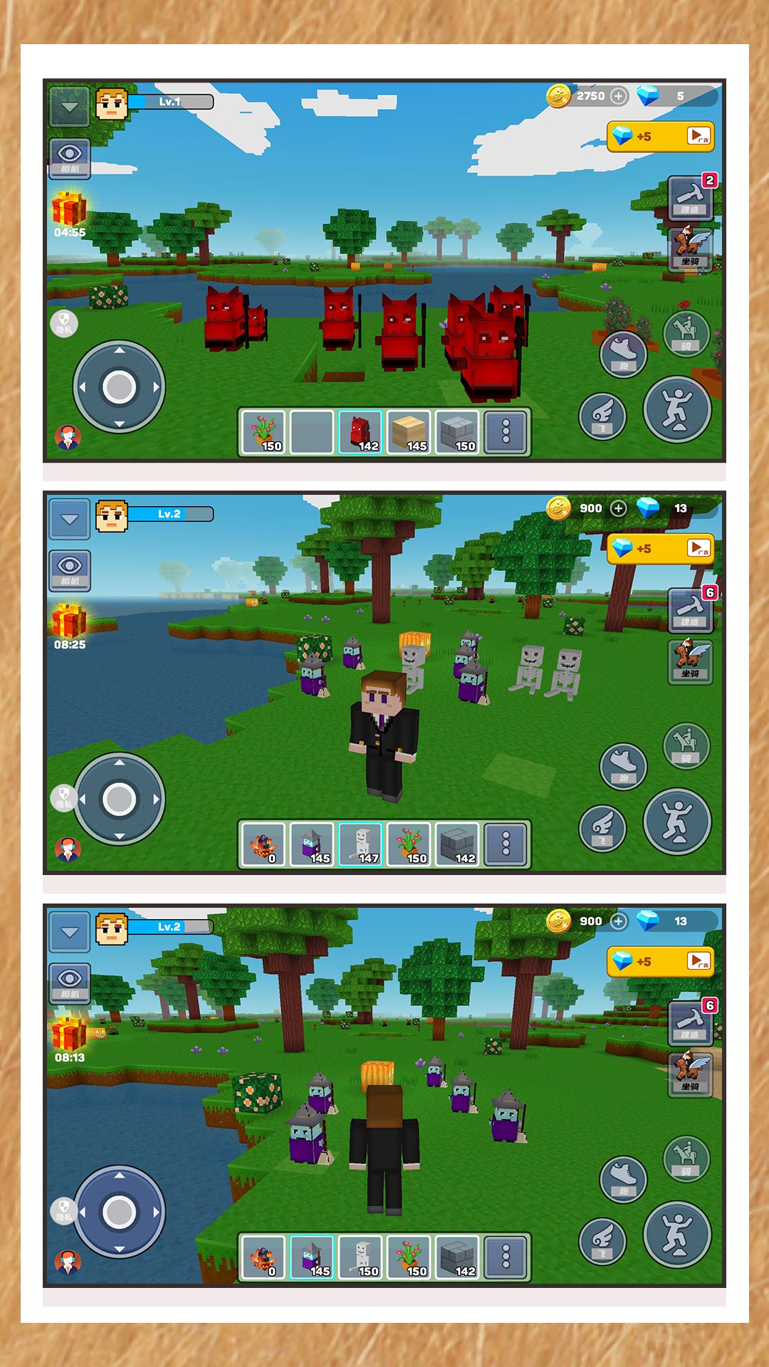 2、利用方块材料建造房屋、城堡甚至城市,支持自定义颜色和材质,打造个性化世界;