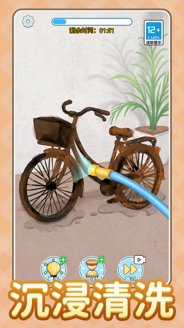 3、请拿起工具,尽情的进行冲洗,游戏非常重口味,让人欲罢不能,注意下方有各种道具提示可选择;