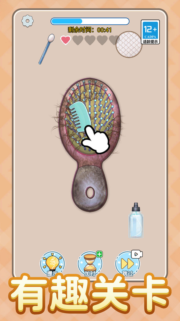 2、跟随着游戏的提示,开始处理各种各样的脏牙以及坏牙,进行冲洗,注意游戏时间;