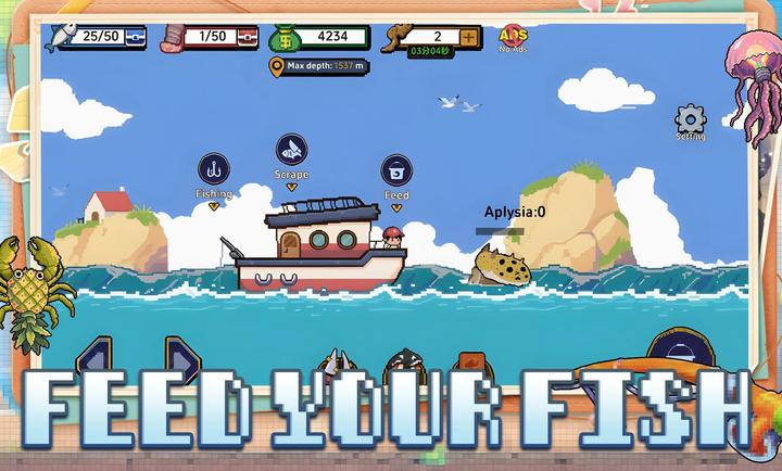 3、鱼类丰富,形态各异的鱼类,如月光鱼、维利坦深海巨物,提供不同刮鳞挑战,部分稀有鱼售价是普通鱼的5倍。