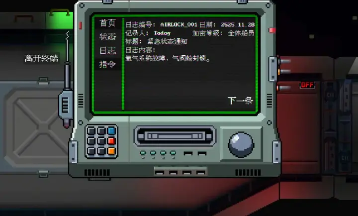 2、像素画风还原早期科幻美学,配合低频音效与环境音,营造压抑氛围,需要时刻提高自己的警惕;