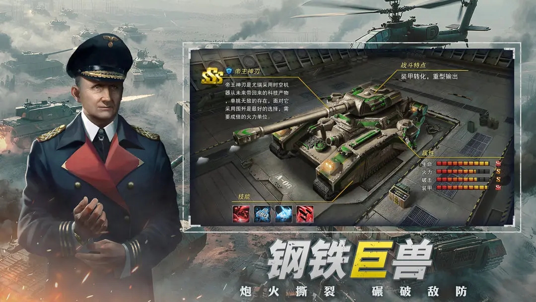 2、每辆坦克都有其历史背景、独特属性和专属技能,深度卡牌养成系统,强化你的核心卡牌;