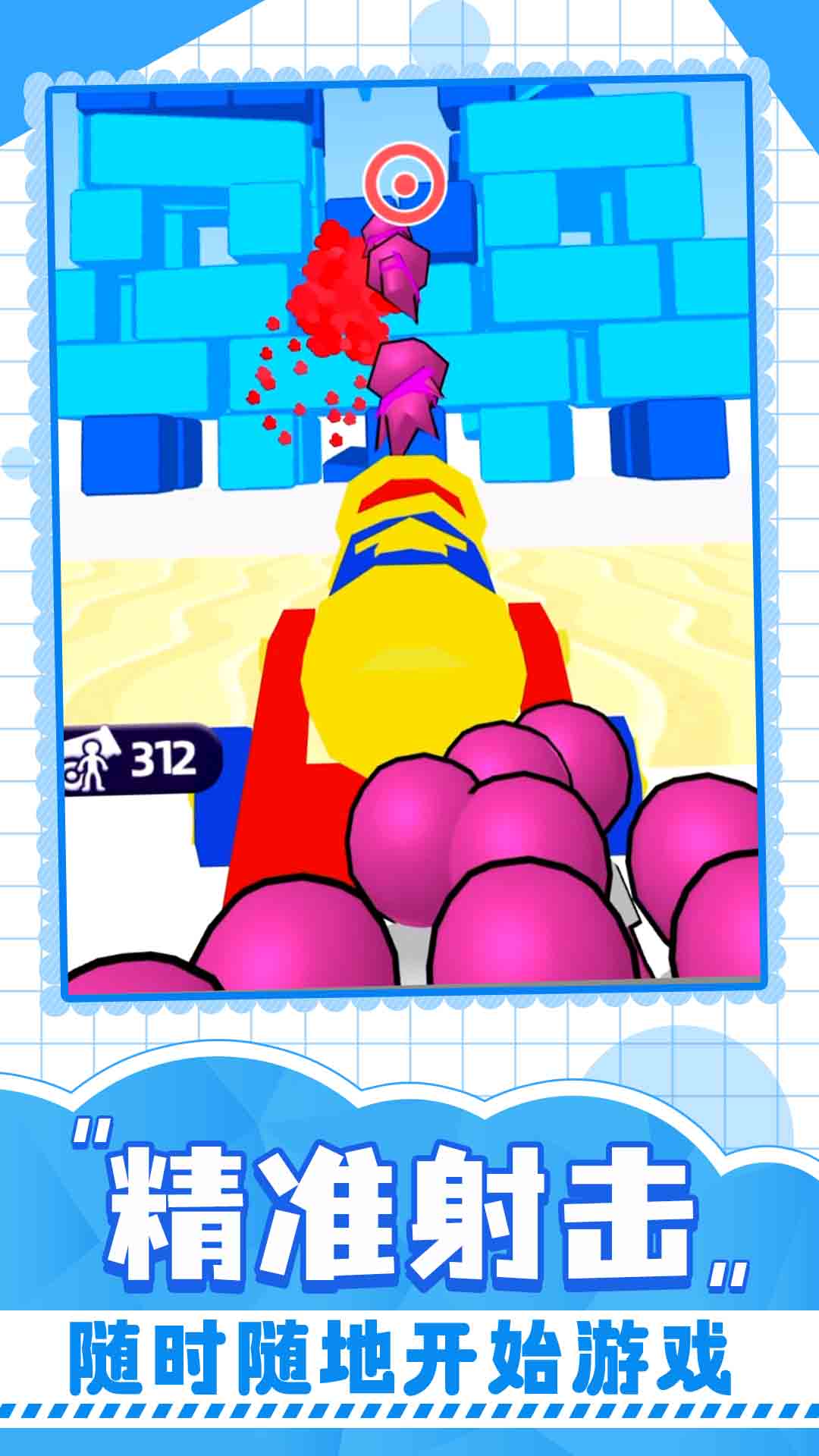 1. 动感十足的画面与音效配合完美,子弹击碎目标的反馈清脆有力,带给玩家沉浸式的爽快战斗体验。