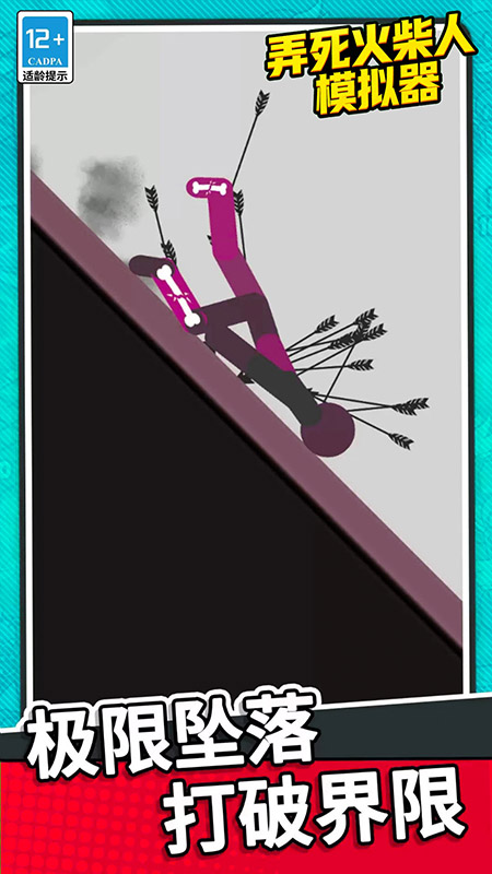 2、无需遵循规则,唯一的目标就是利用环境,让火柴人的摔落艺术造成最大范围的破坏和最高的伤害数值。