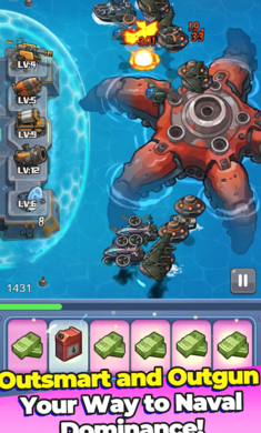 2、多样武器类型可解锁,包括速射炮、鱼雷发射器与激光炮,每种具备独特攻击特效。