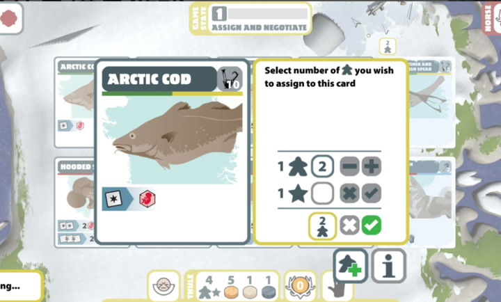 格陵兰棋盘是一款深度策略版图构建桌游的数字移植作品,背景设定于11至15世纪气候剧变下的格陵兰岛。四位玩家分别扮演图尼特人、诺斯人、萨米人与图勒人四大族群,在十个回合(代表十代人)中争夺生存与胜利。你需要派遣猎人狩猎、采集资源、殖民新大陆、联姻谈判,同时应对严寒、动物迁徙与信仰抉择。游戏巧妙融合资源管理、宗教选择与部落互动,最终依据所选神论体系,多神论重狩猎、一神论重资源计算得分。历史厚重感与策略博弈交织,带来沉浸而富有教育意义的文明兴衰体验。