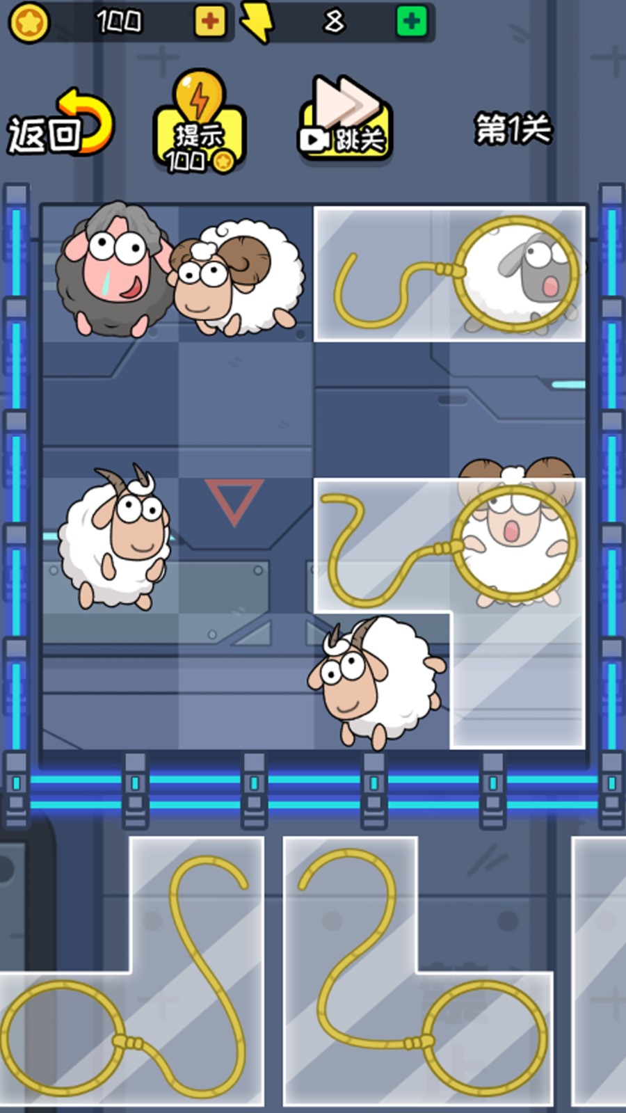 1、玩家在游戏中,将面对一系列基于经典玩法但深度拓展的创意解谜关卡,目标为套住小羊。