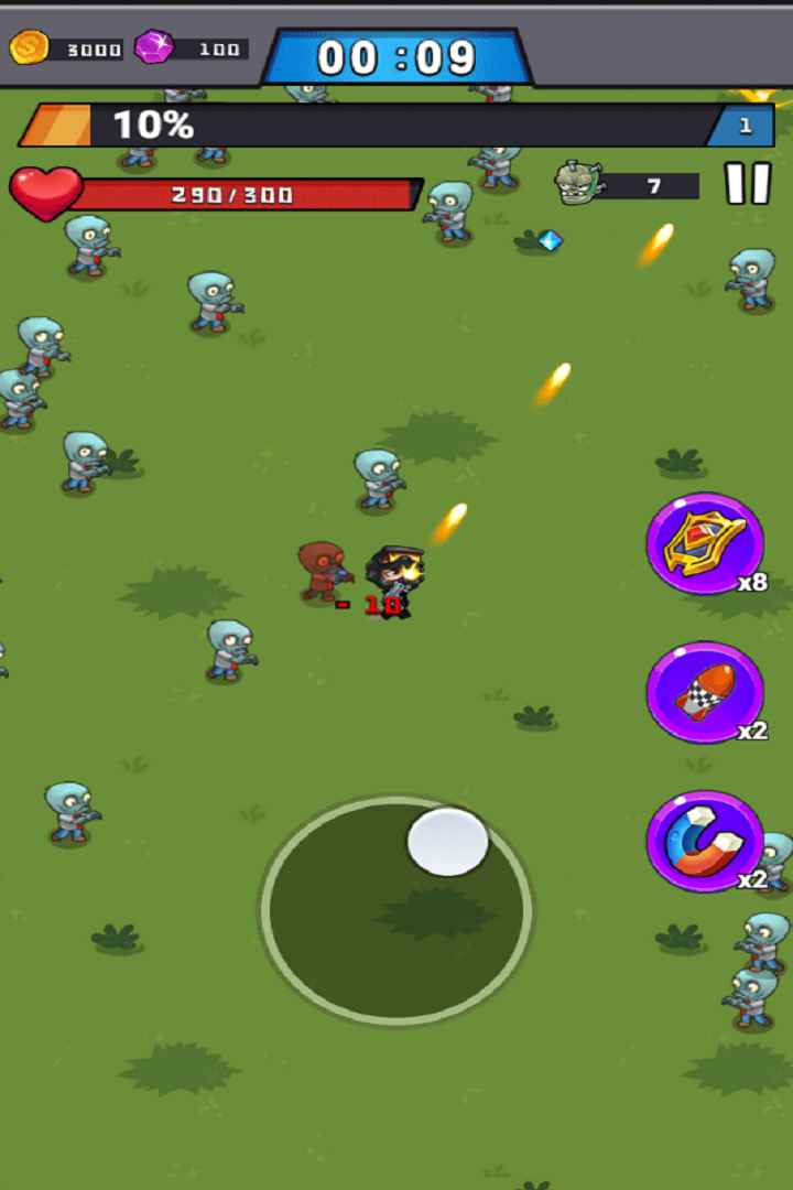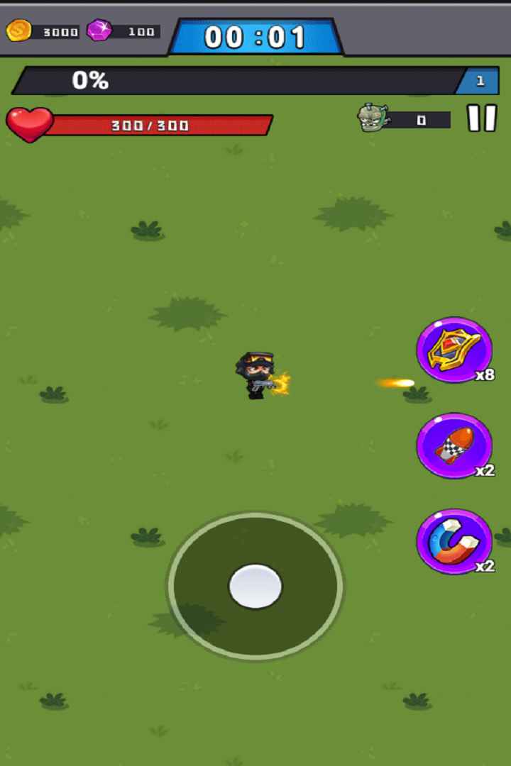 1、进入游戏,控制游戏中的角色自由的移动,射击沿路的僵尸,获取丰富的奖励。
