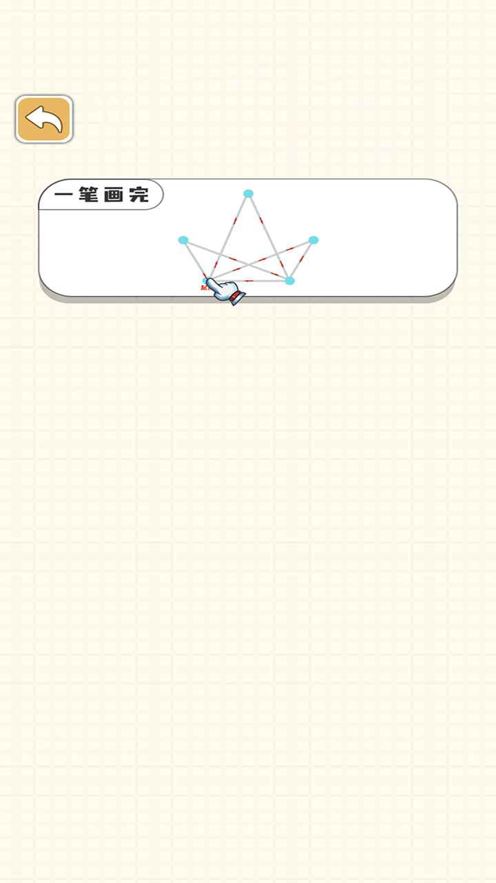 2、游戏难度逐步的提升,需要一笔将图案完整的画完,操作十分的简单,考验玩家的智慧。