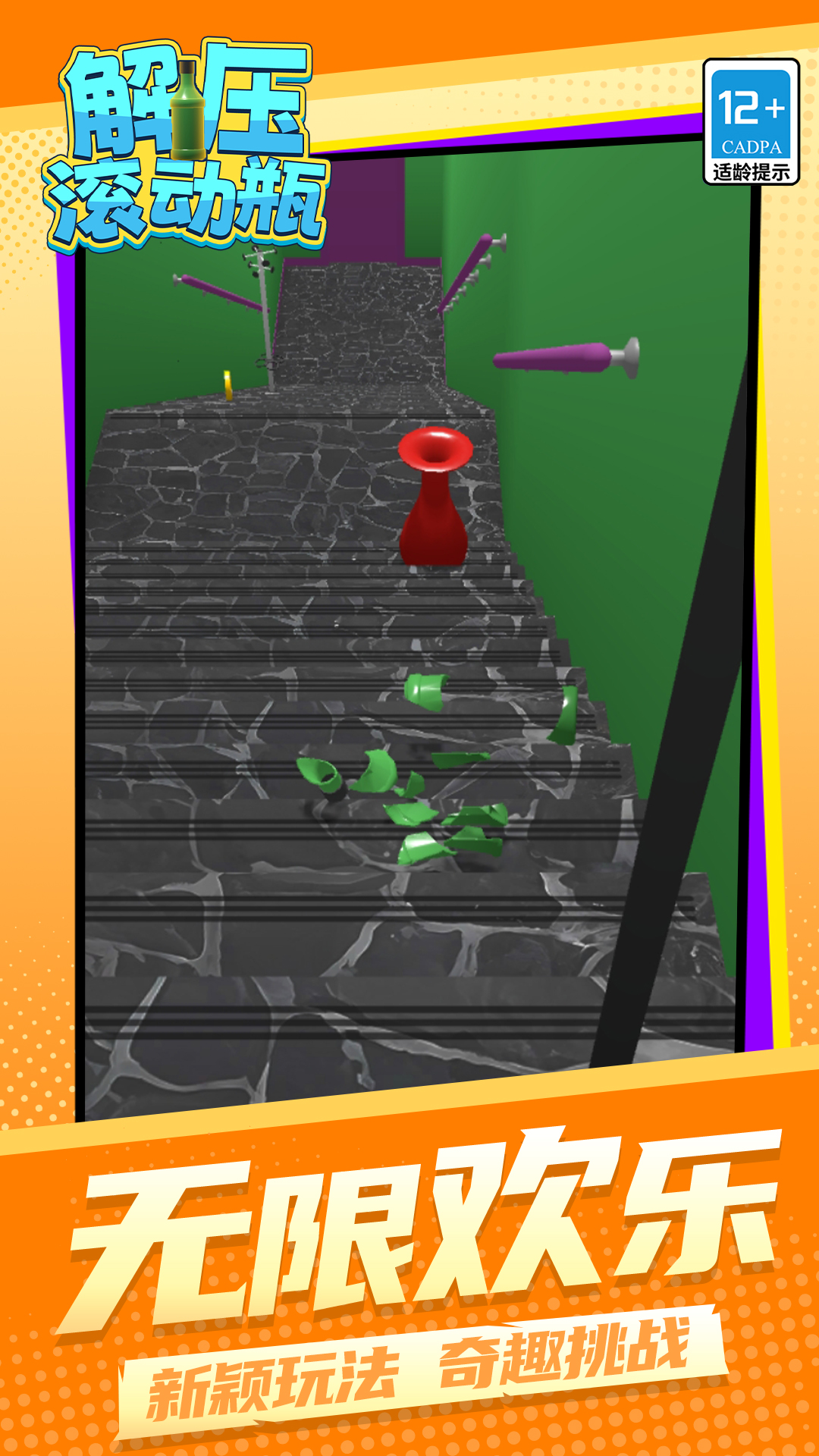 解压滚动瓶是一款专注于提供即时压力释放的物理模拟游戏。游戏的核心玩法极其简单直接,你将面对一个摆满各式瓶罐的场景,诸如玻璃瓶、塑料瓶、陶罐等。你的任务就是用手指随心所欲地拖拽、旋转甚至抛掷它们,然后将这些瓶子从楼梯、高台或斜坡上推落。游戏中没有任何需要达成的目标、没有复杂的关卡设计,也没有失败惩罚。物理引擎会忠实地模拟瓶子翻滚、碰撞、弹跳直至最终碎裂或静止的全过程,并伴随有逼真且层次分明的音效反馈。
