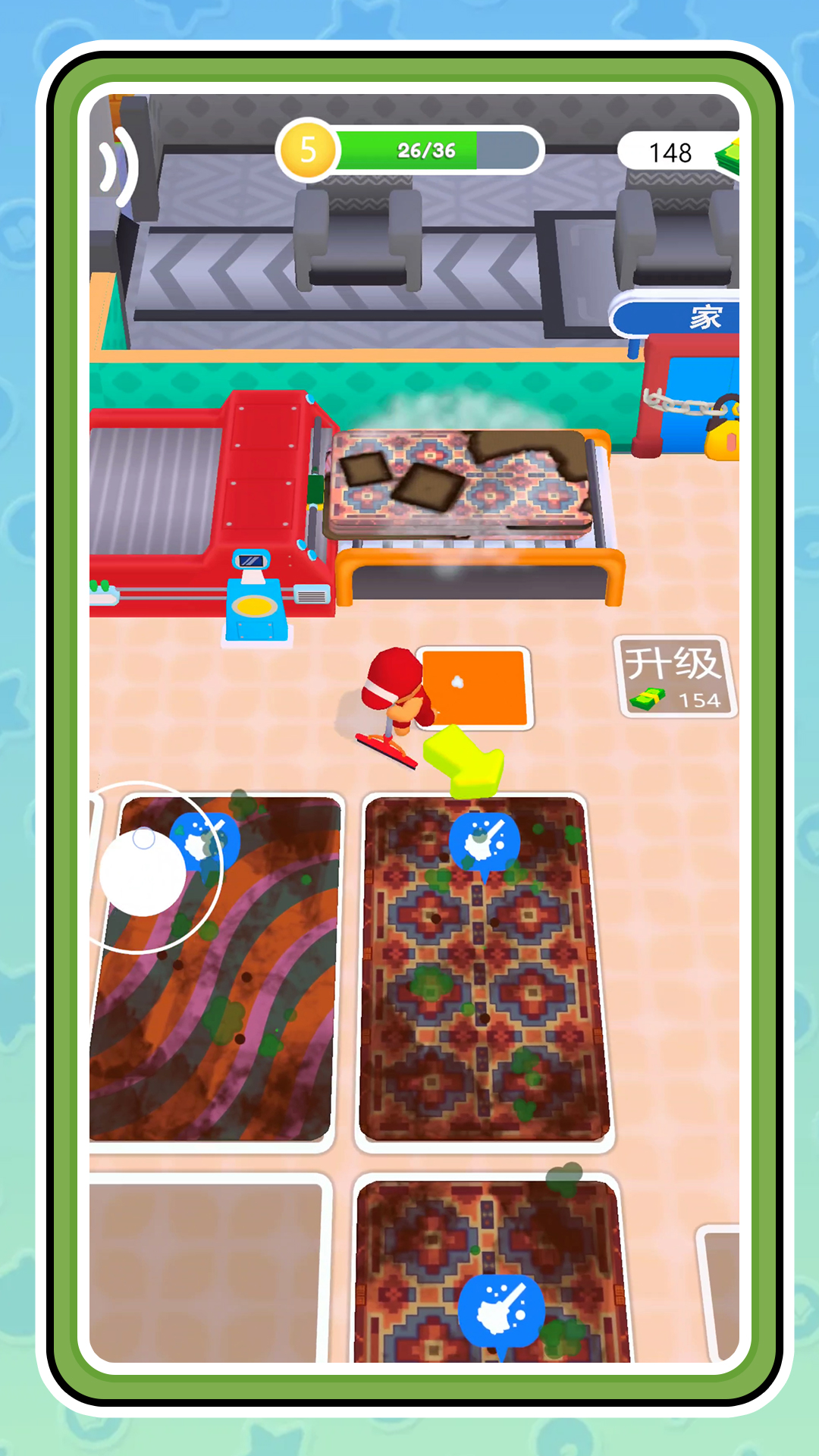 4、解锁新的位置,一次可以清理更多的地毯,提高工作的效率,一次清理两个地毯。