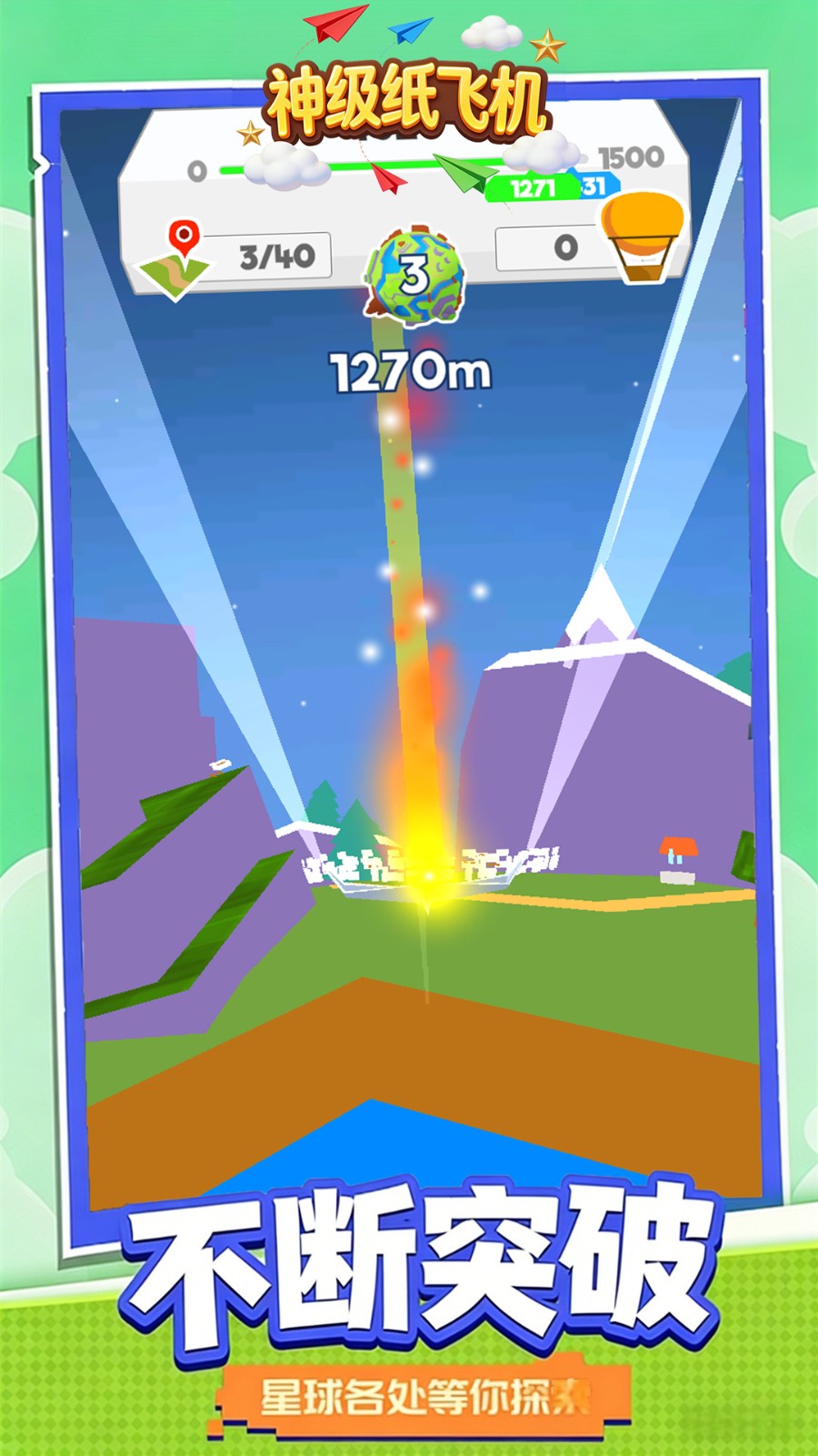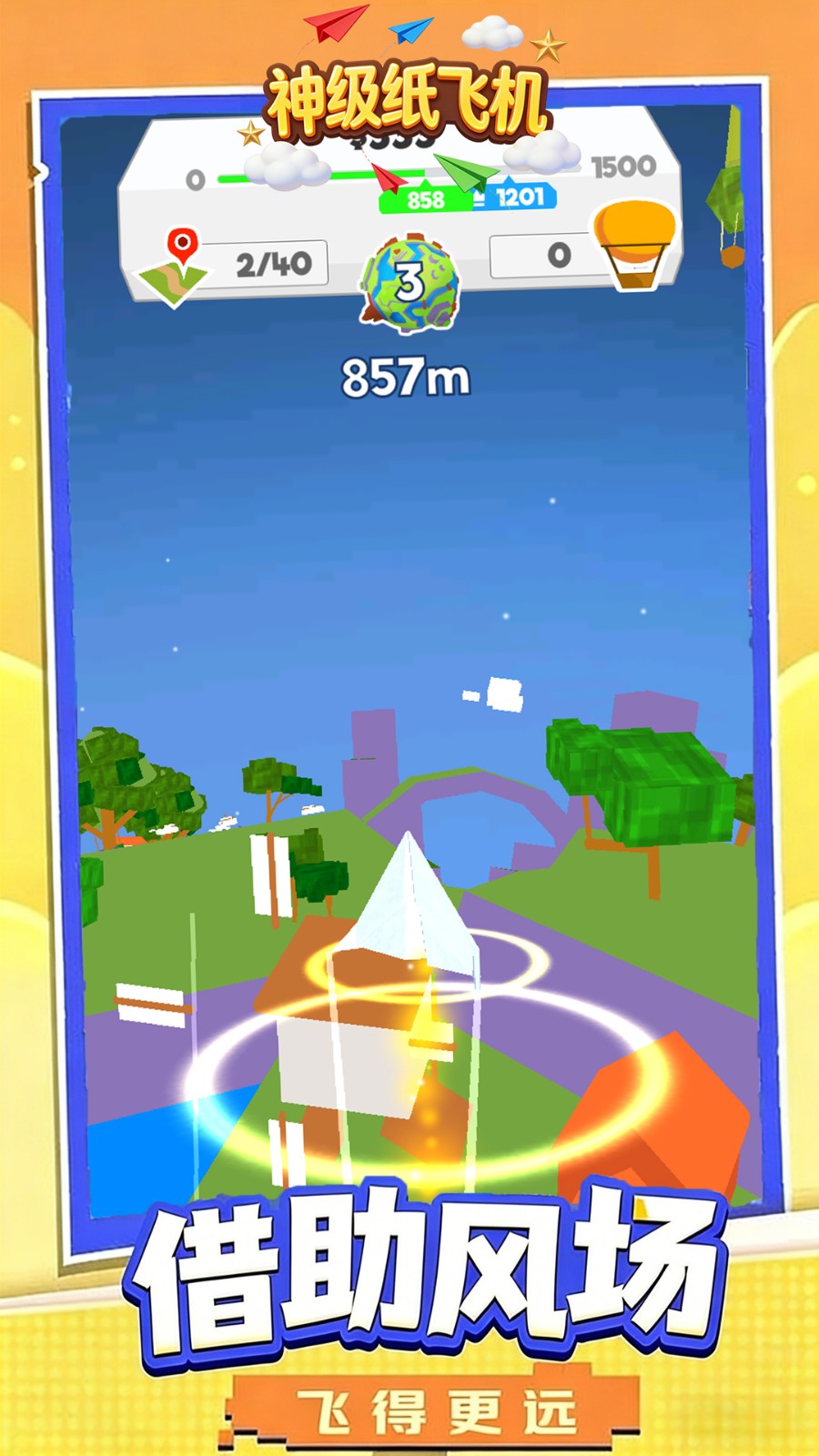 3、解锁不同造型与性能的炫酷纸飞机,成为纸飞机飞行领域的传奇大师。