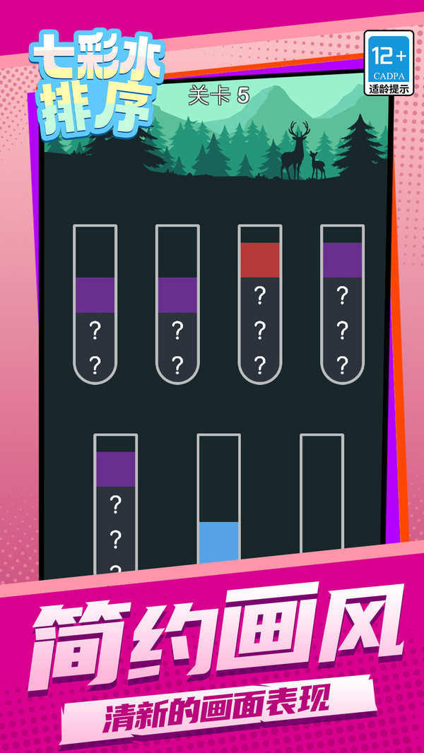 3、关卡设计由浅入深,随着试管数量与颜色种类的增加,谜题复杂度稳步提升,带来持续而平滑的挑战体验。