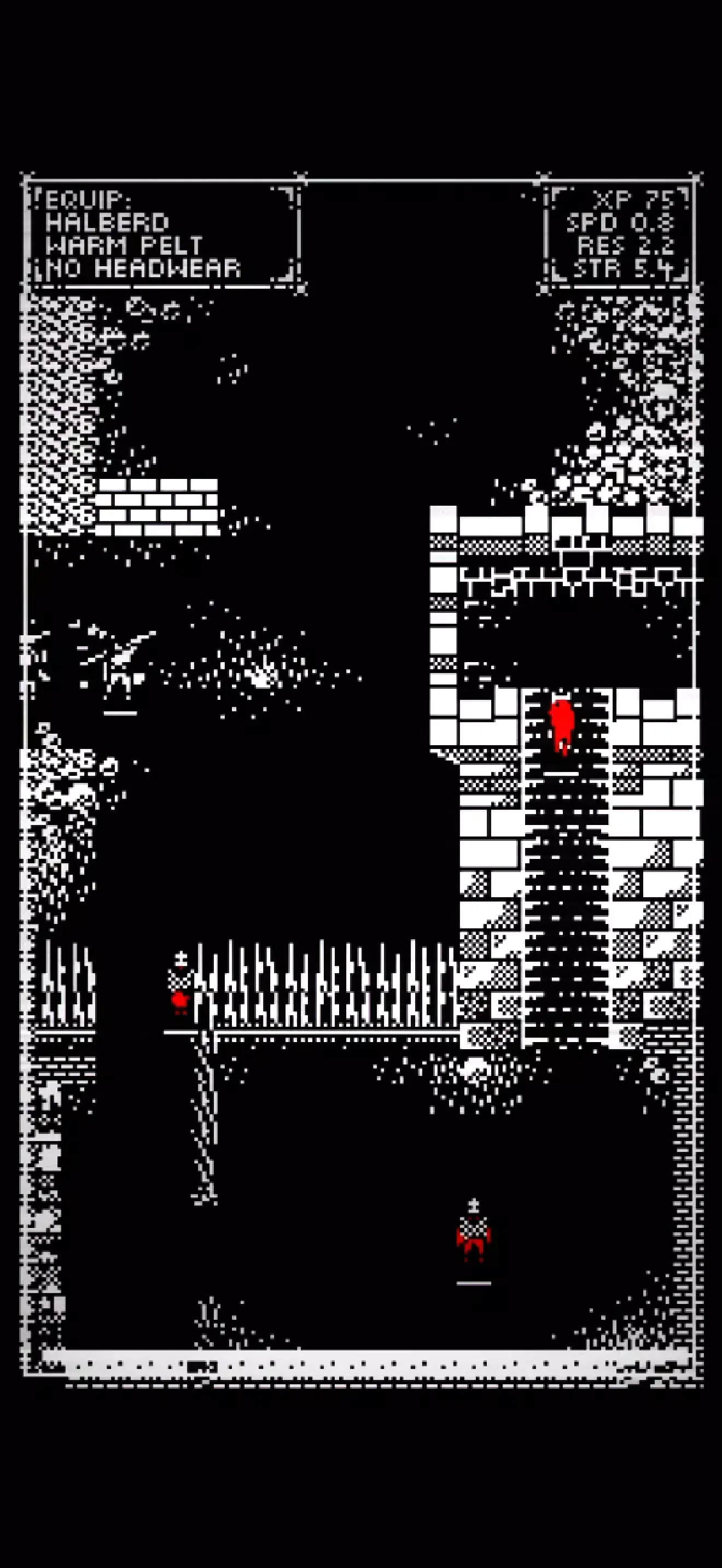 1、采用极致简约的1位像素美术风格,黑白对比强烈,营造出肃穆而神秘的末世氛围。