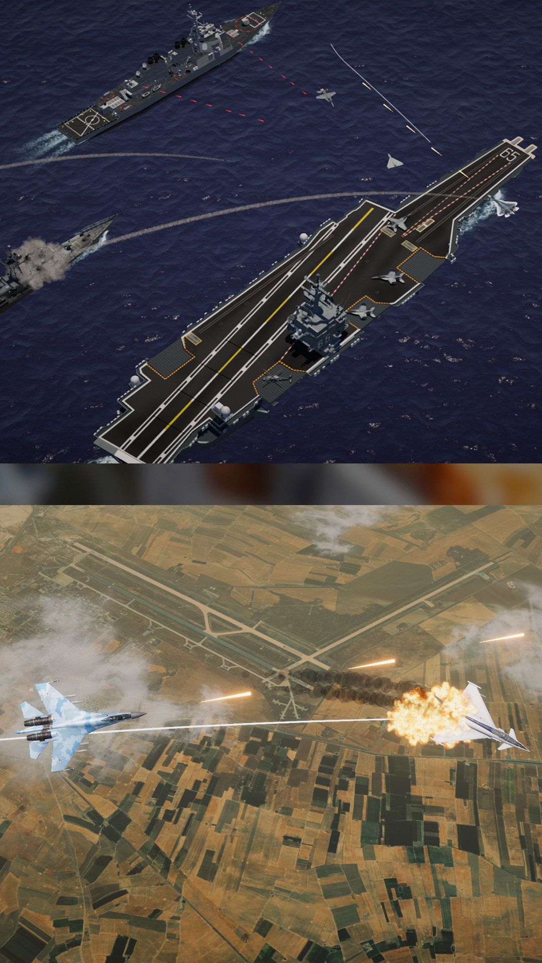 2、每架战机均基于真实型号设计,玩家可根据任务需求搭配空对空导弹、空对地炸弹或电子战吊舱;