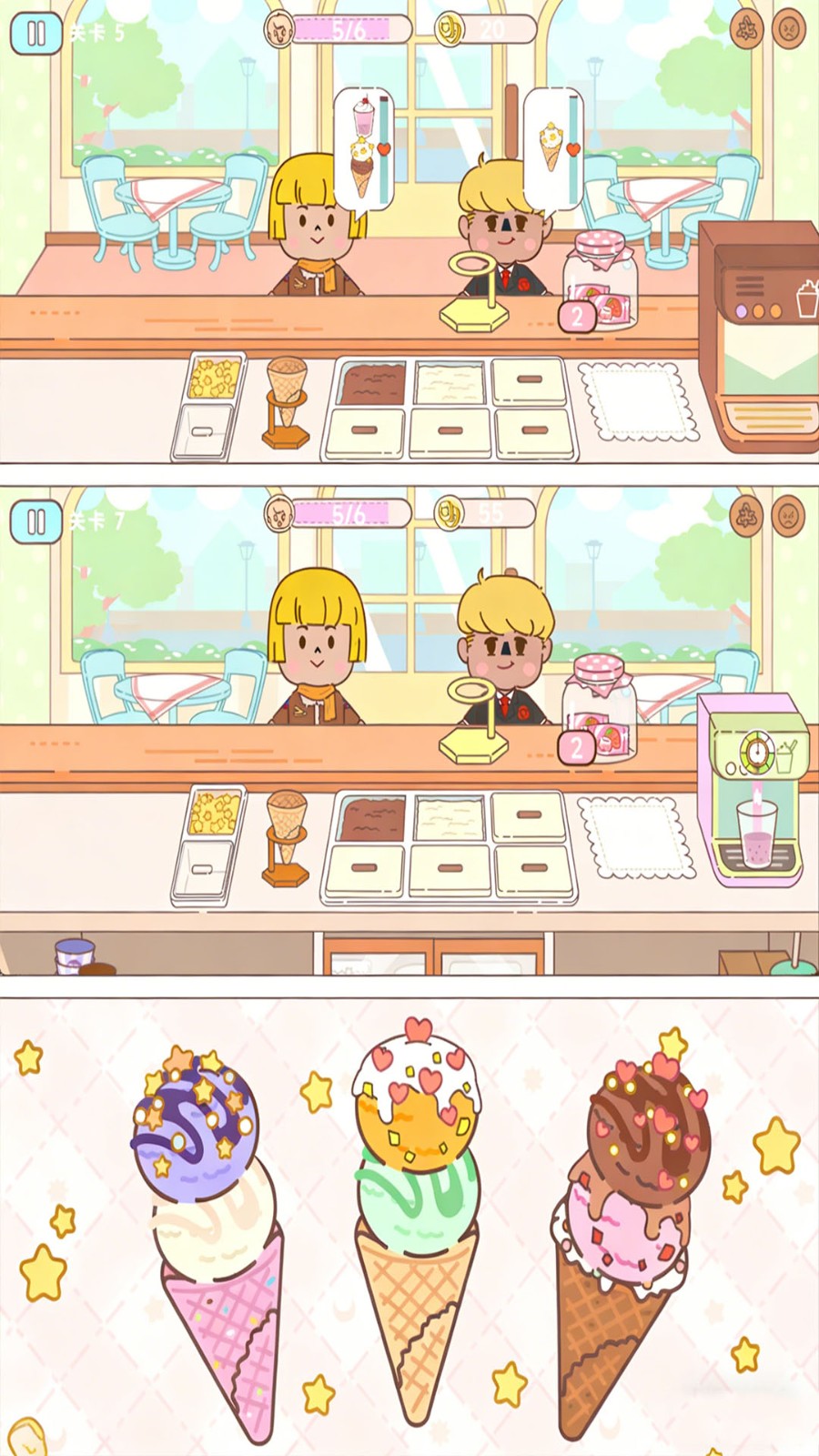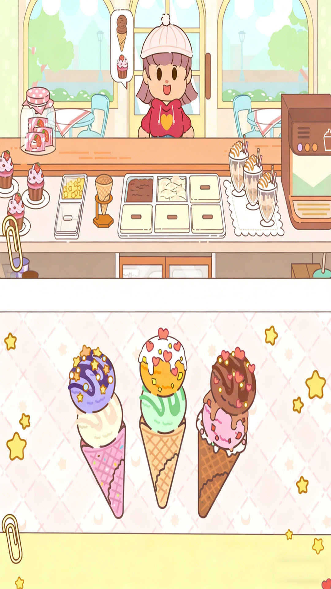 1、展开一场在温馨小镇中经营特色冰淇淋店的挑战,为顾客制作出美味冰淇淋,解锁新玩法。