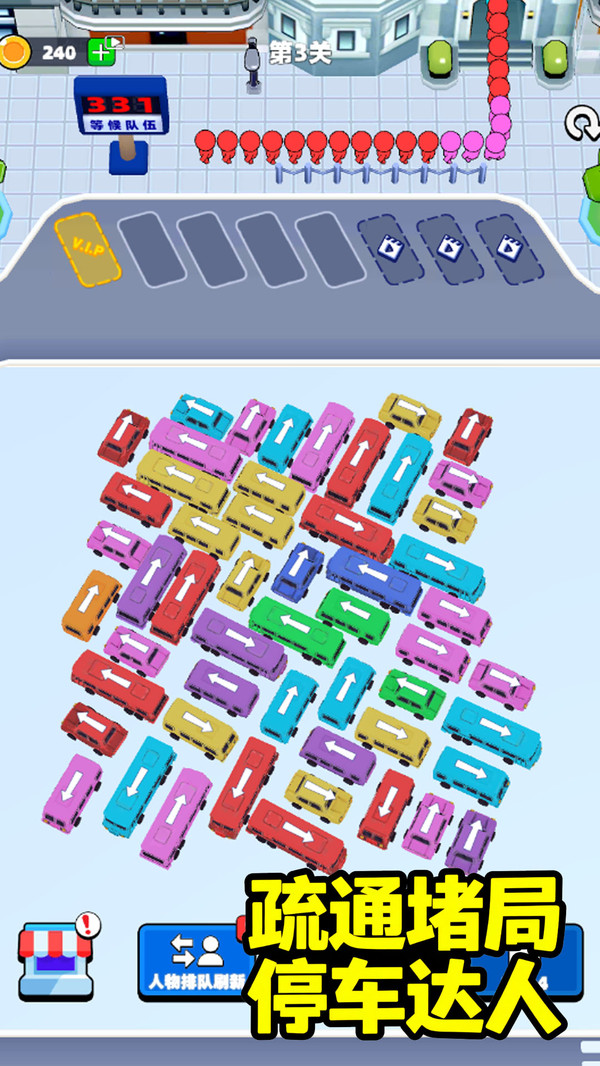 3、不同车辆的大小决定能乘坐客人的数量,合理将全部车辆移开即可获得关卡胜利。