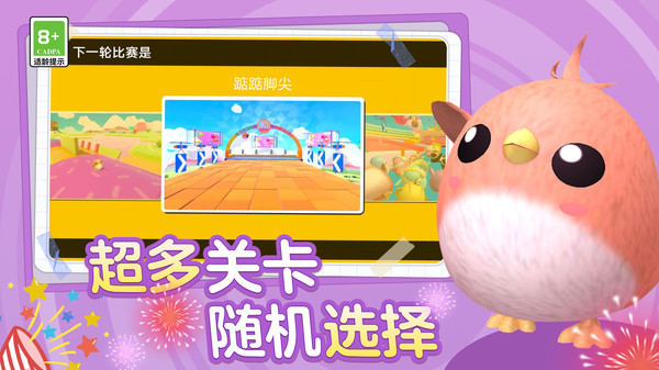 2、关卡玩法每一轮都不同,灵感来源于经典综艺闯关项目,如节奏跳跃、平衡前进、障碍穿梭等,充满趣味与意外性。