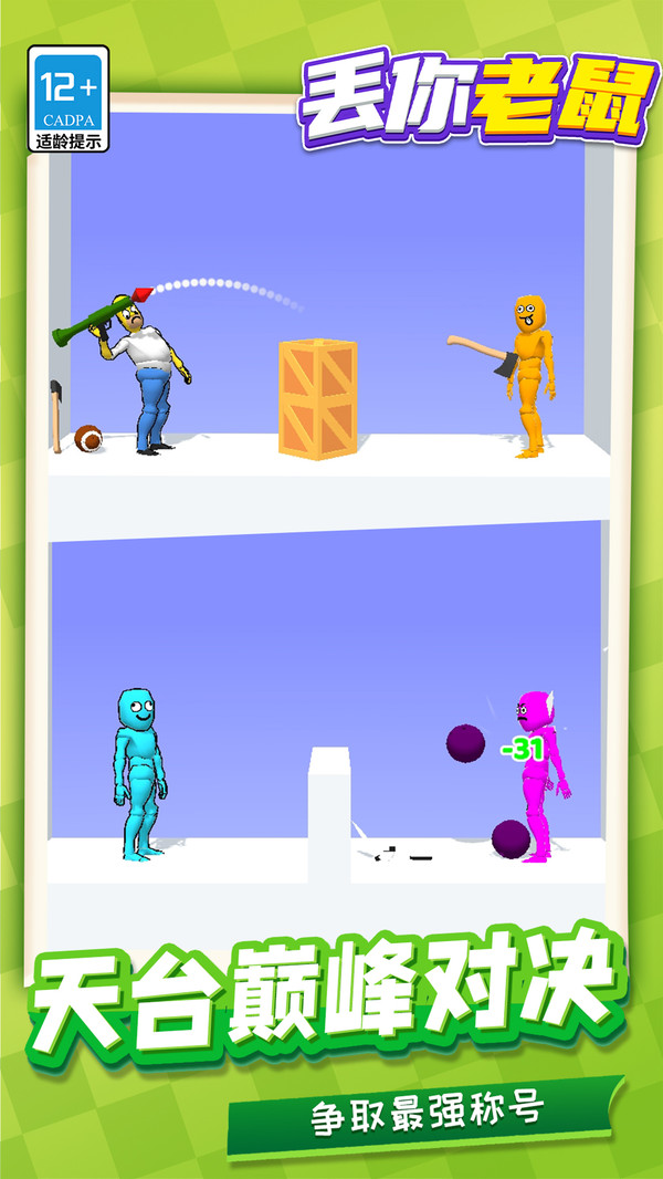 丢你老鼠是一款投掷玩法的休闲竞技游戏,在这款快节奏休闲游戏中,您的目标直接而欢乐,用各种稀奇古怪的攻击投掷道具,精准地砸中对手!在多样的关卡中,您需要灵活走位、选择道具,通过滑动屏幕调整角度与力道,将手中的一切惊喜丢向对手。成功命中击败敌人即可赢得胜利,在轻松诙谐的氛围中享受砸出来的快乐!