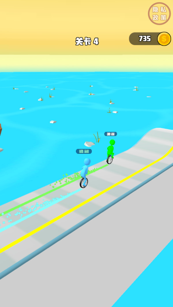 3、与多名对手同场竞技,争取第一个抵达终点线。在躲避障碍与保持高速之间找到最佳平衡点。