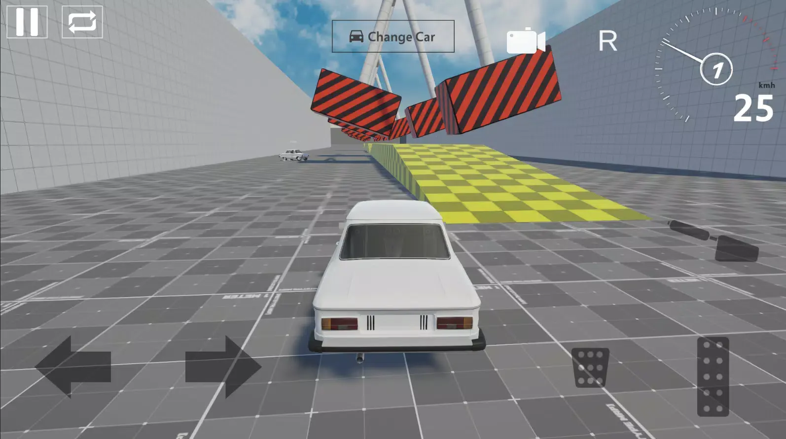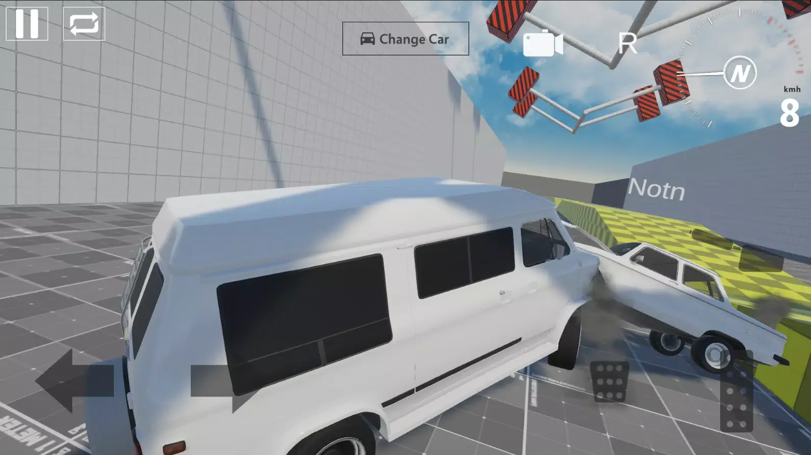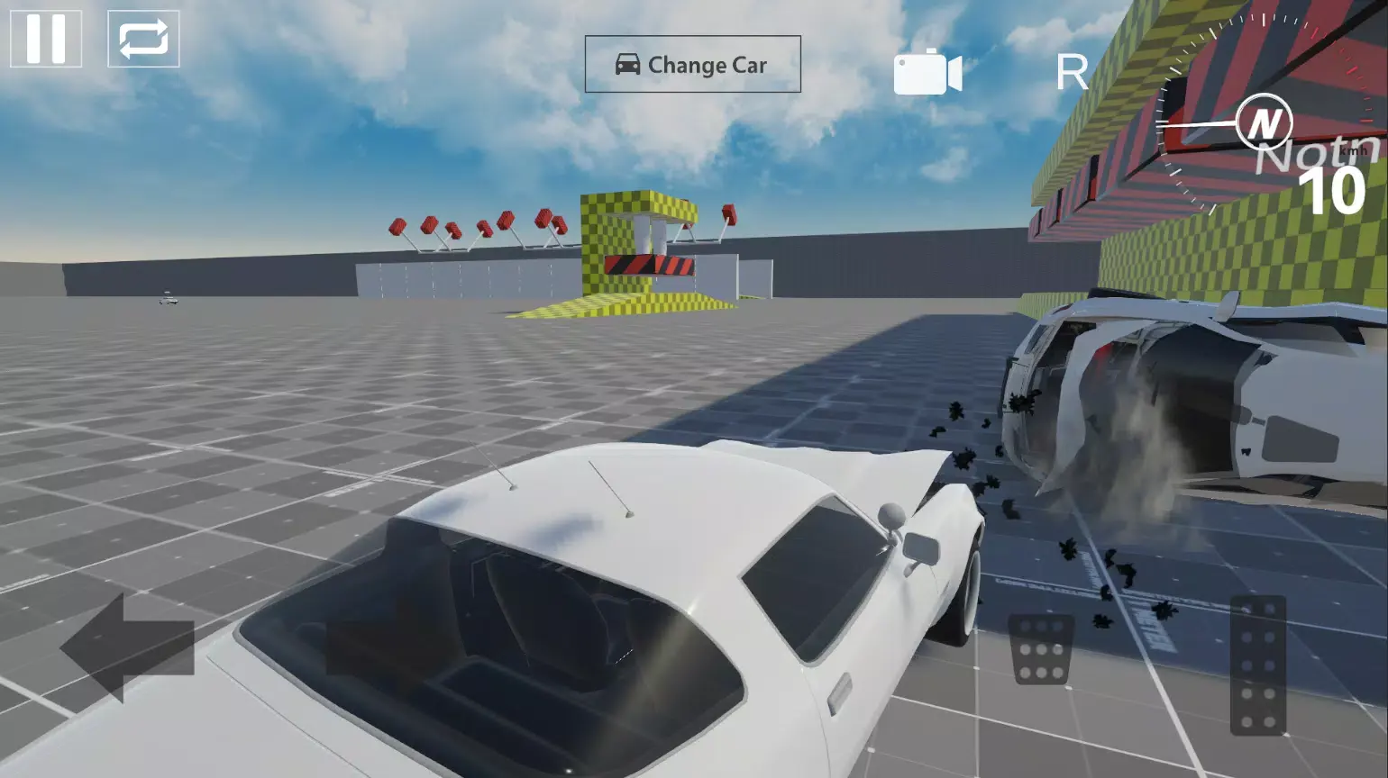 2、通过虚拟摇杆与按键控制油门、转向与手刹,精准操控车辆完成撞击或闪避动作。