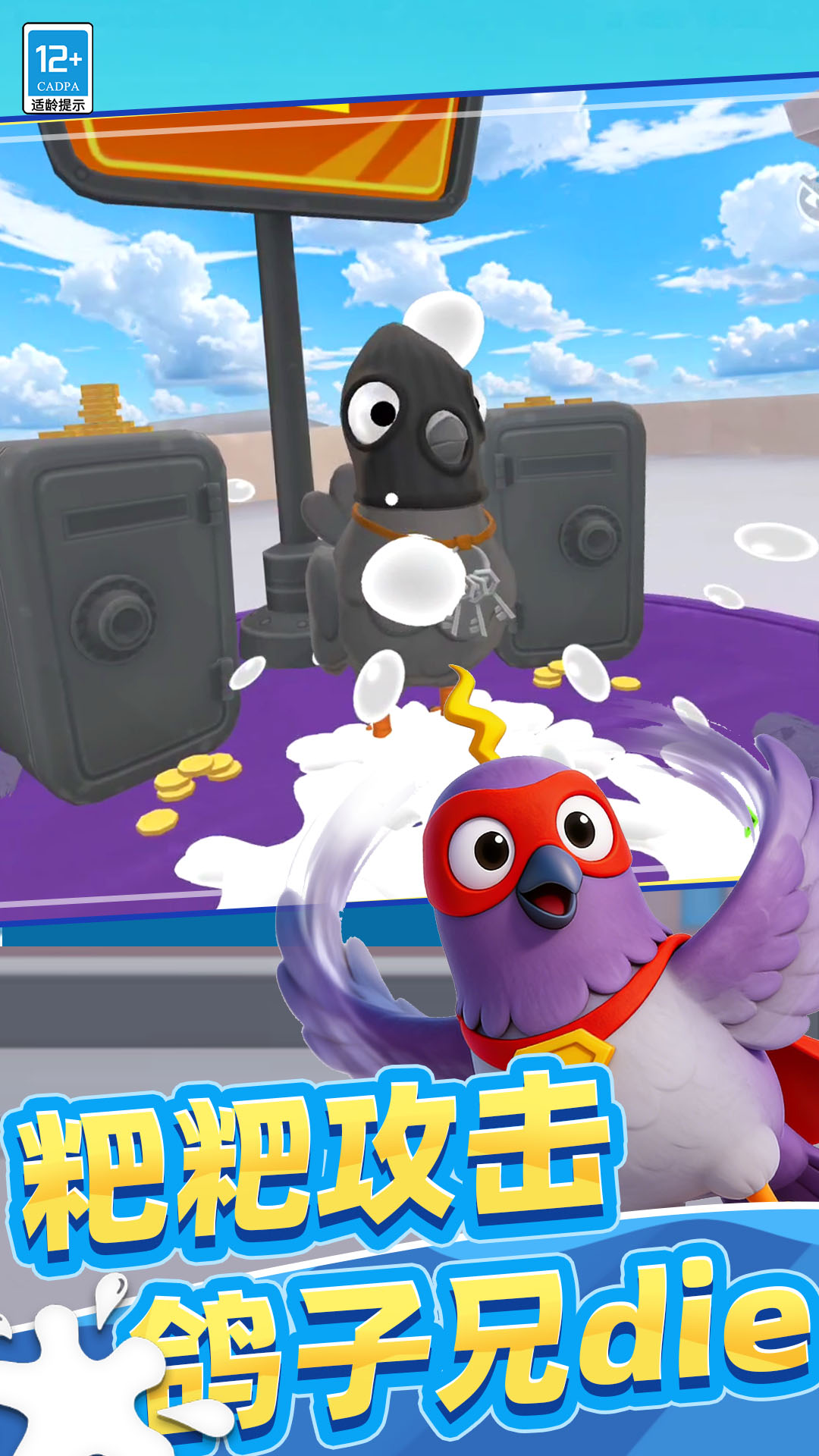 2、鸽子角色设计独特,各具特色,且每个鸽子都拥有其打爆对手的独特技能,增加了游戏的观赏性;