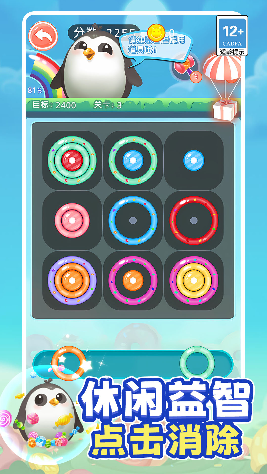 2、随着关卡的层层推进,甜圈的出现速度将愈发迅猛,对你的反应力发起极限挑战,让你在轻松操作中尽享狂炫甜圈的极致爽感,