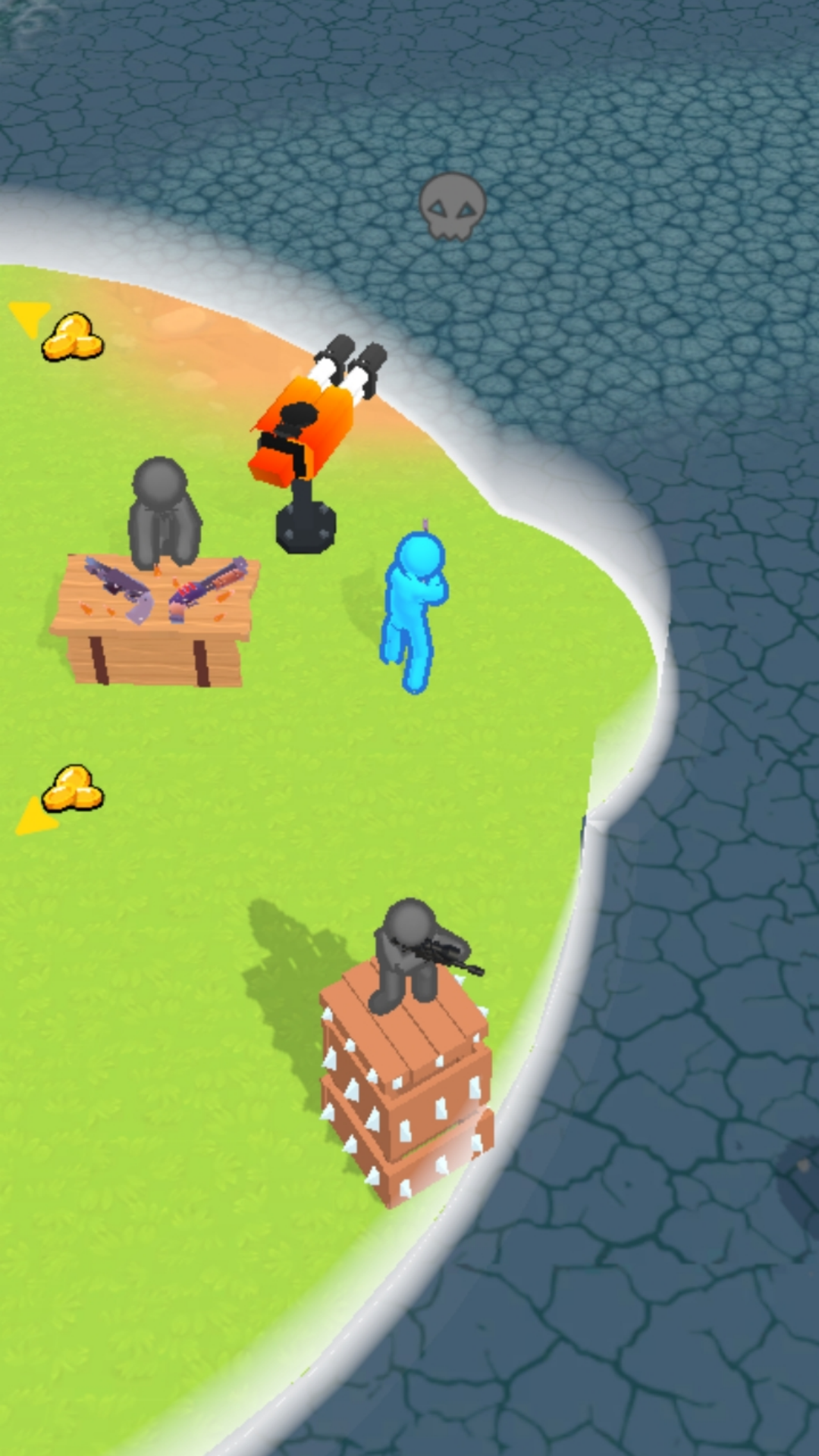 3、收集丰富的金币,解锁新的武器炮台,扩大生存区域,挑战更加刺激,玩法丰富有趣。