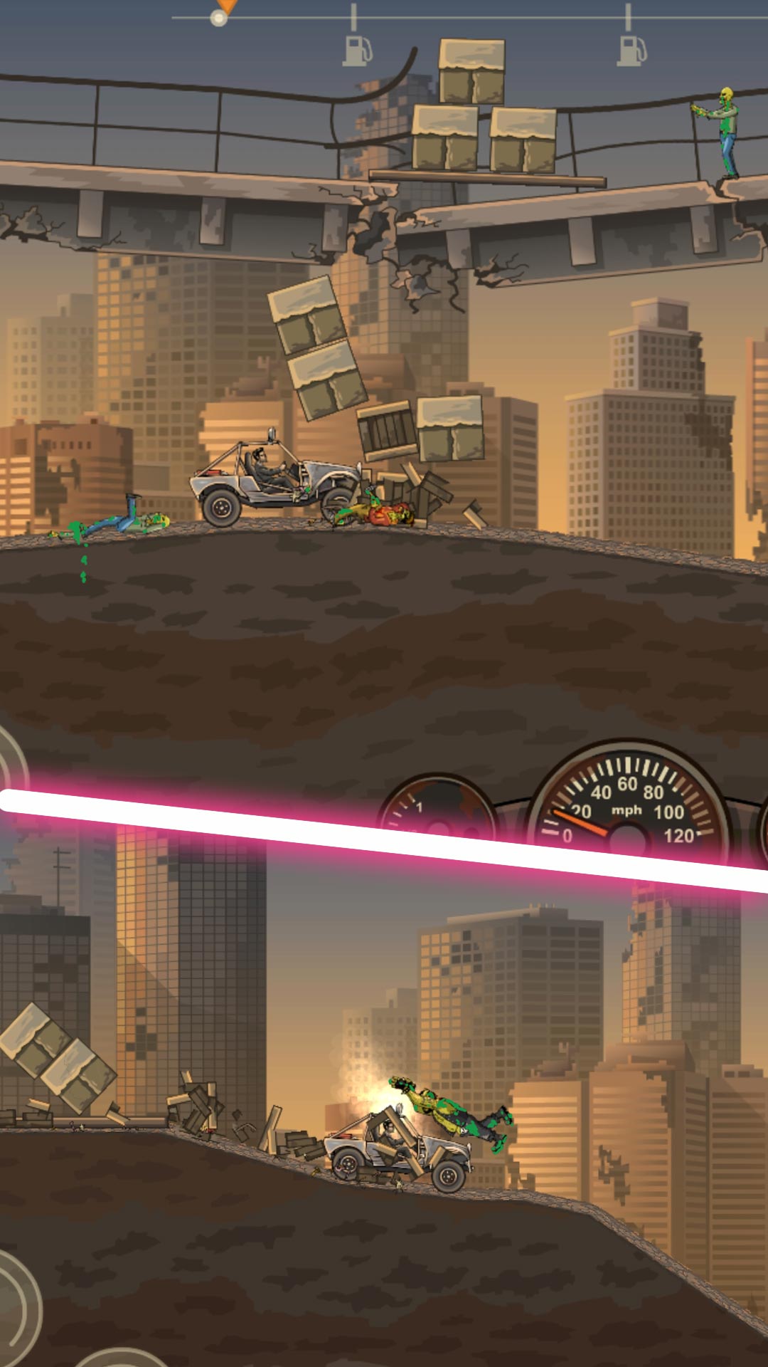 2、点击加速极速的冲刺,撞击沿路的僵尸,冲向下一个路口,热血冲刺挑战新的任务。