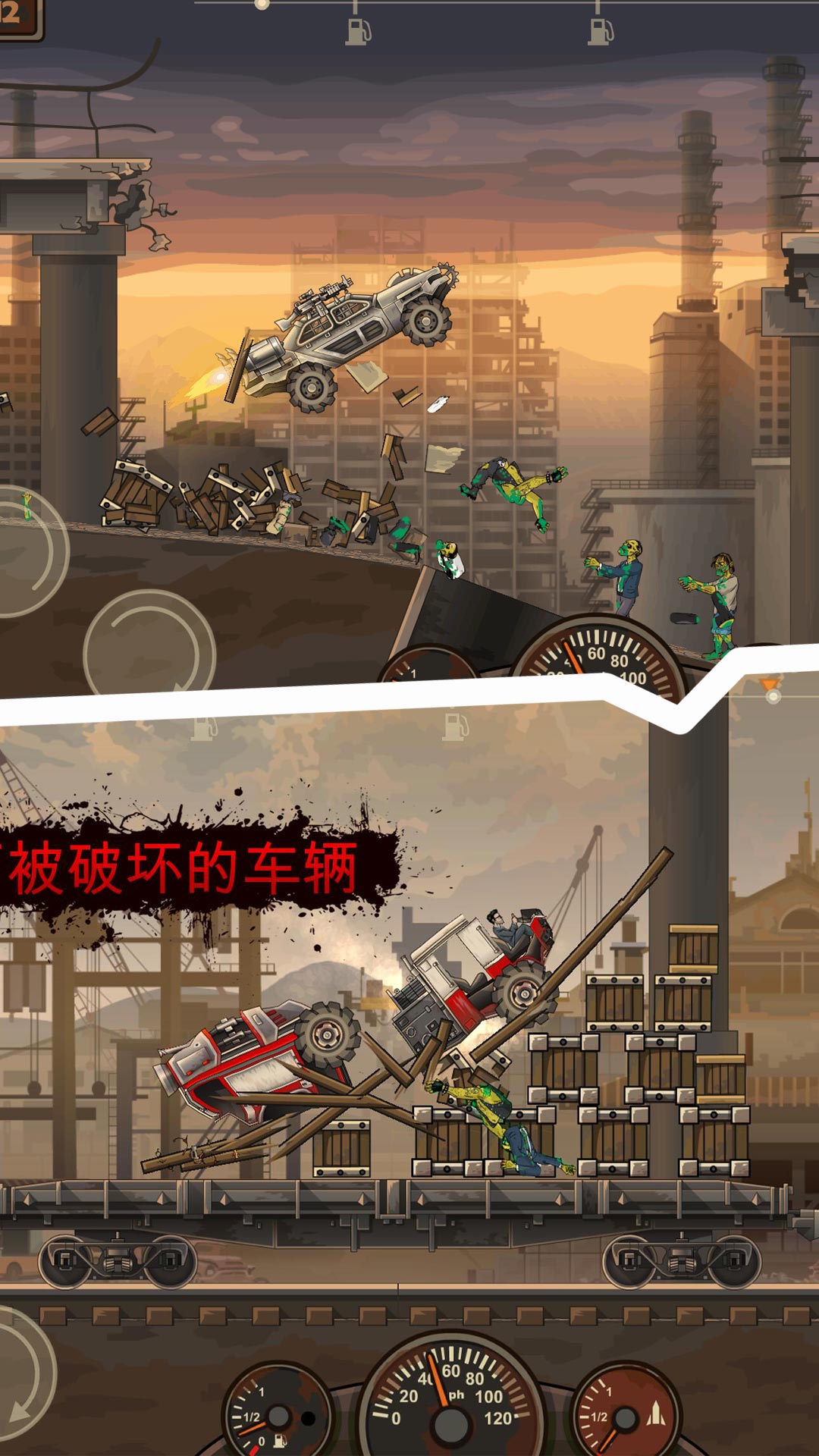 3、继续的前进开启新的冒险,玩法更加刺激,撞击大量的僵尸,获取丰富的奖励。