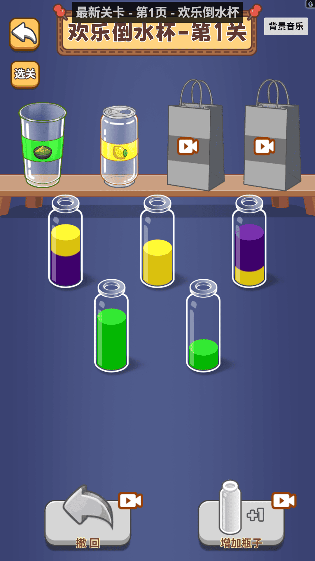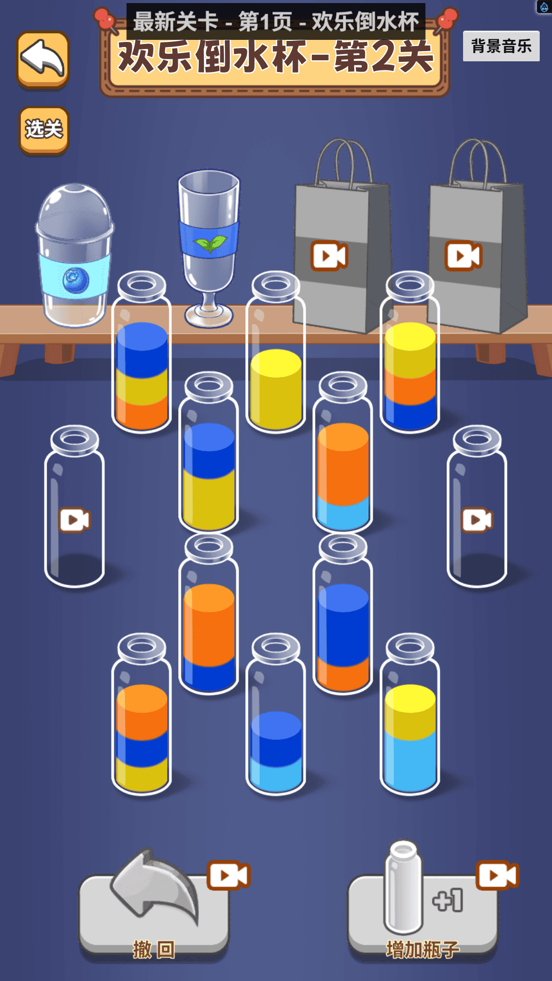 1、游戏过程中,选择有液体的杯子,再点击目标杯子完成倾倒,操作简单但策略深度十足;