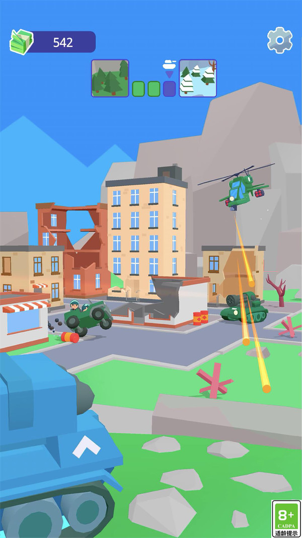 3、从驾驶基础坦克挑战简单敌人,到驾驭顶级战车与巨型BOSS周旋,带给玩家持续的征服感。