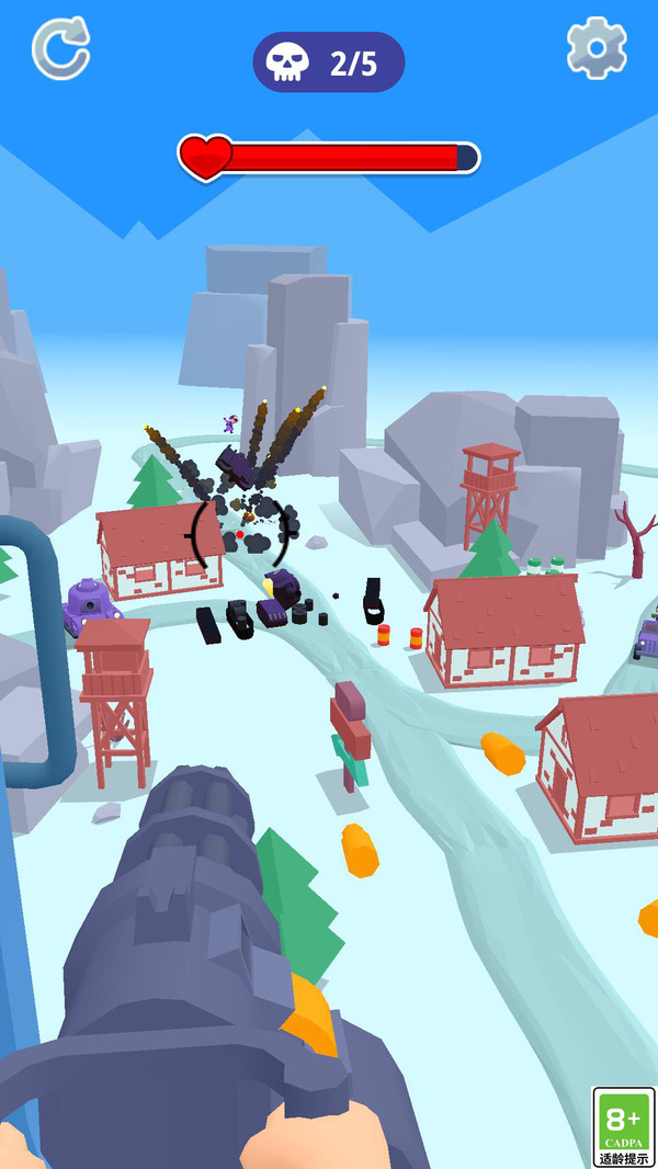 1、玩家操控坦克的主炮,通过精准瞄准,在震撼的音效与特效反馈中,享受一发入魂摧毁敌军的核心乐趣。