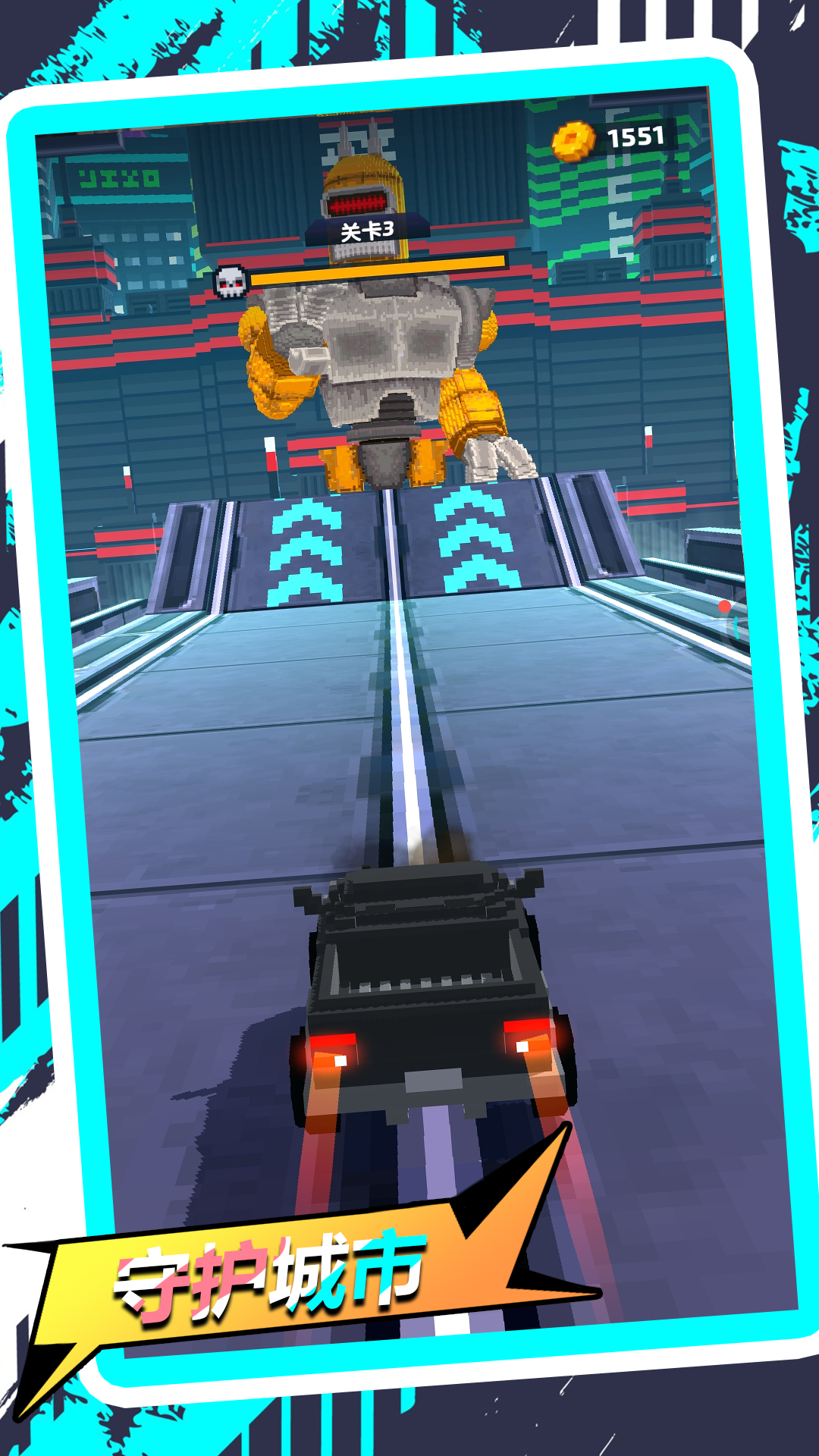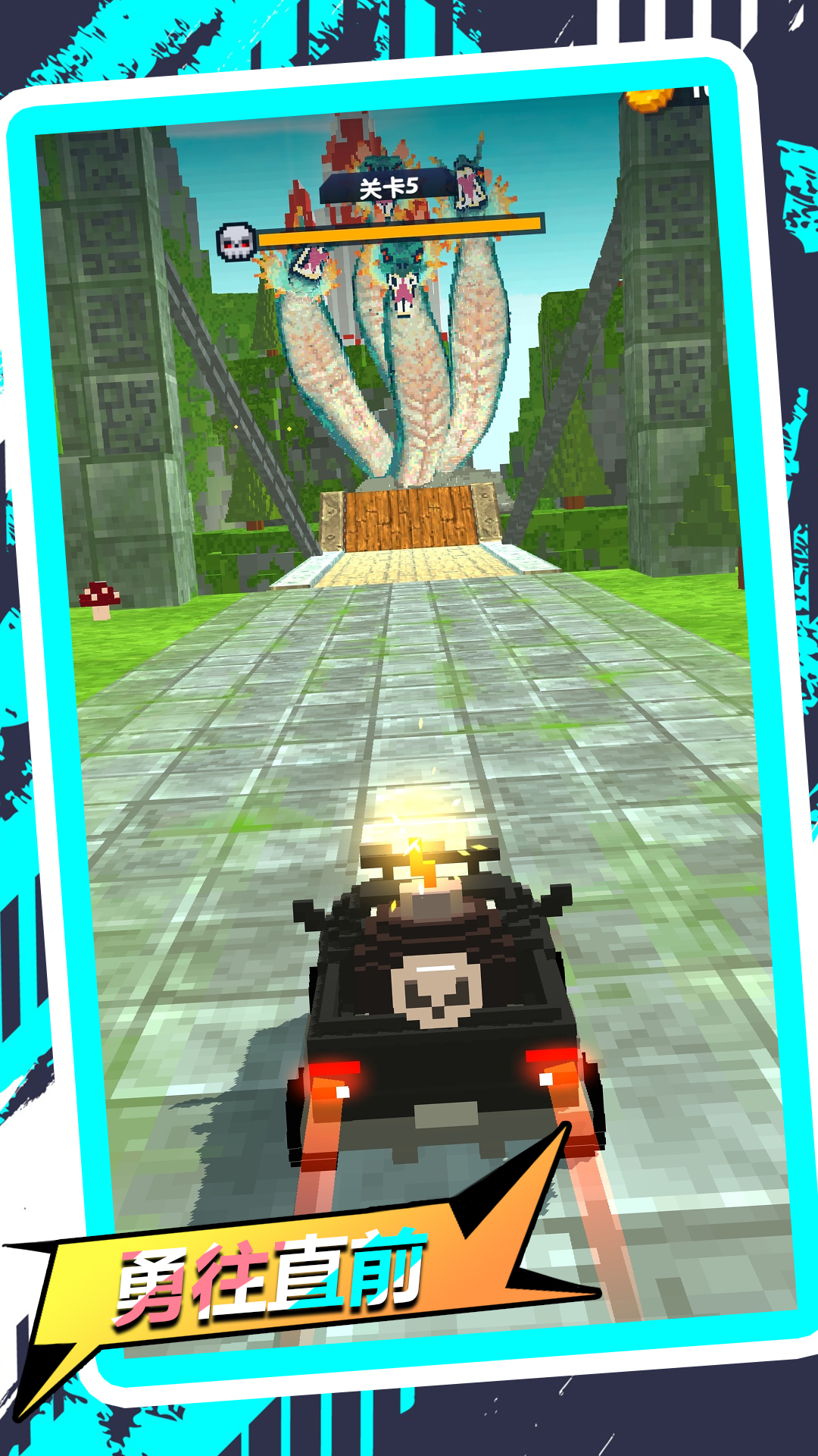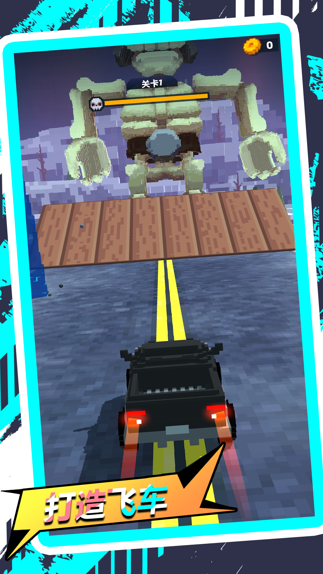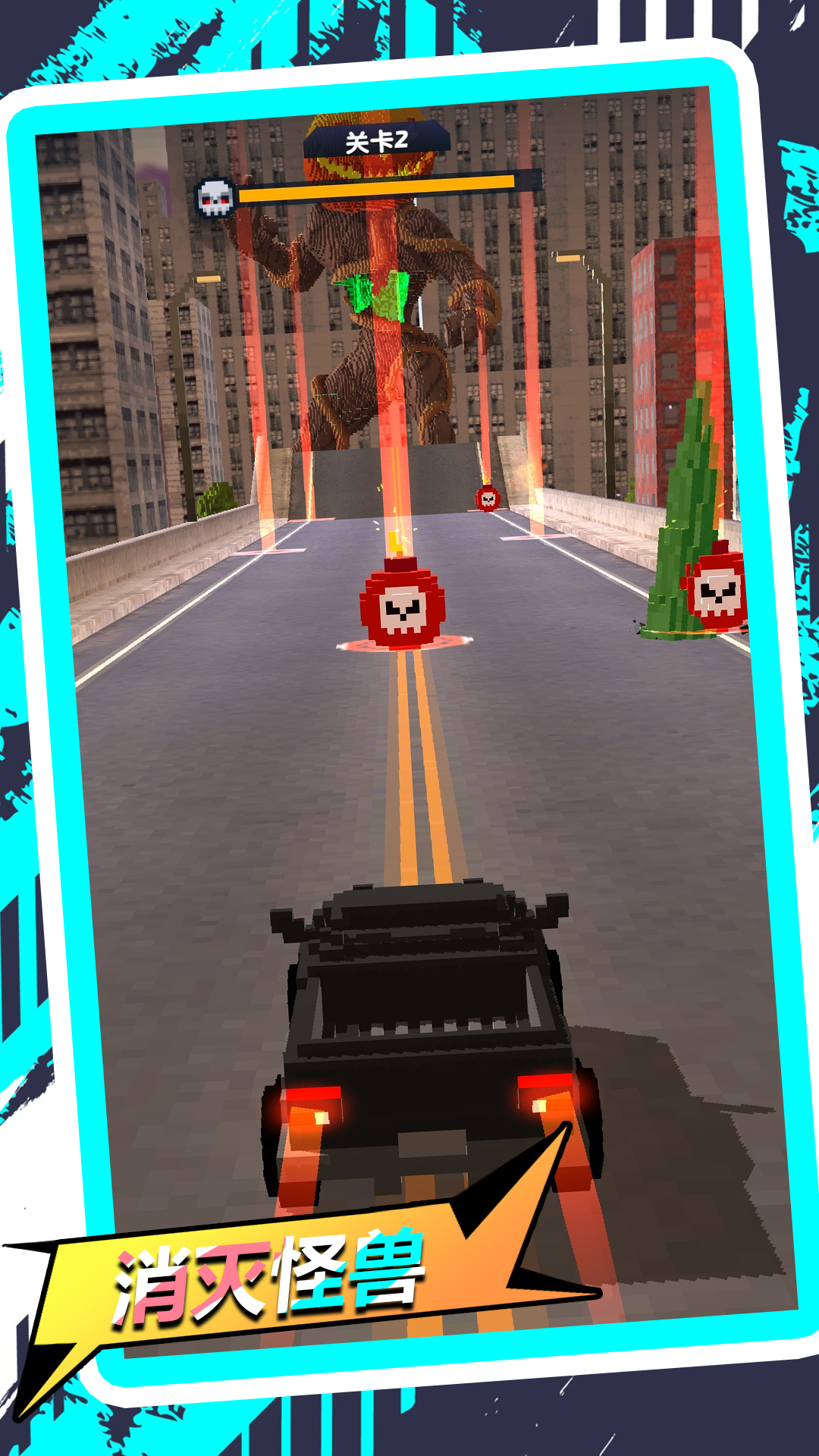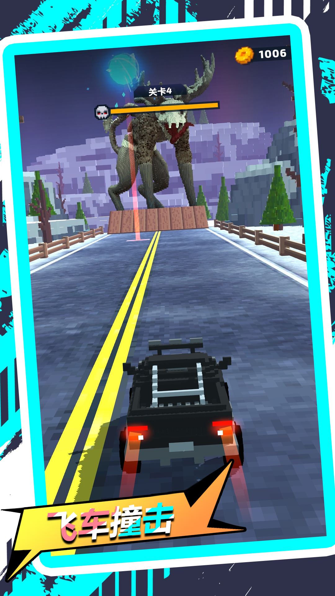 1、进入游戏,点击长按车辆开始加速,极速的冲刺,撞击摧毁像素怪物,极速的冲刺。