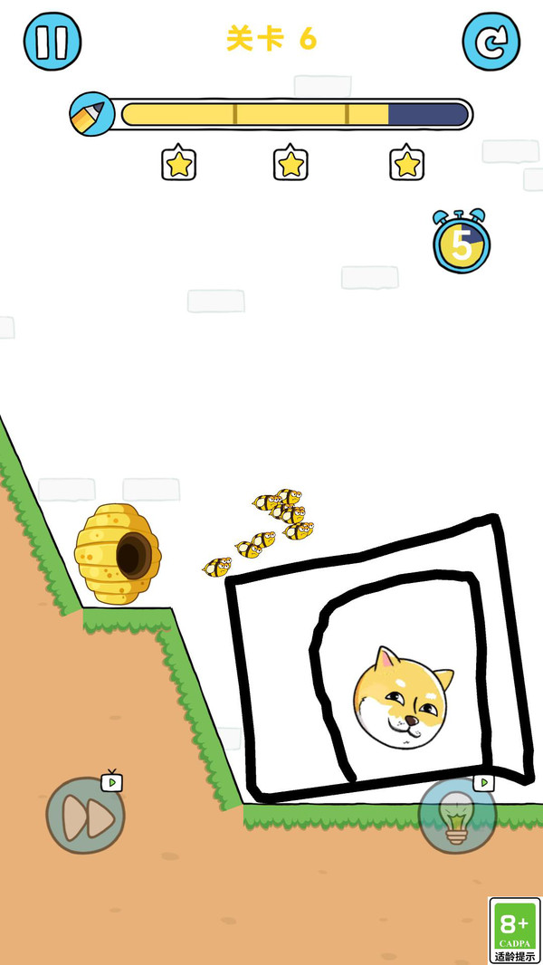 3、绘画完成后,倒计时结束狗狗不被蜜蜂攻击到即可过关。