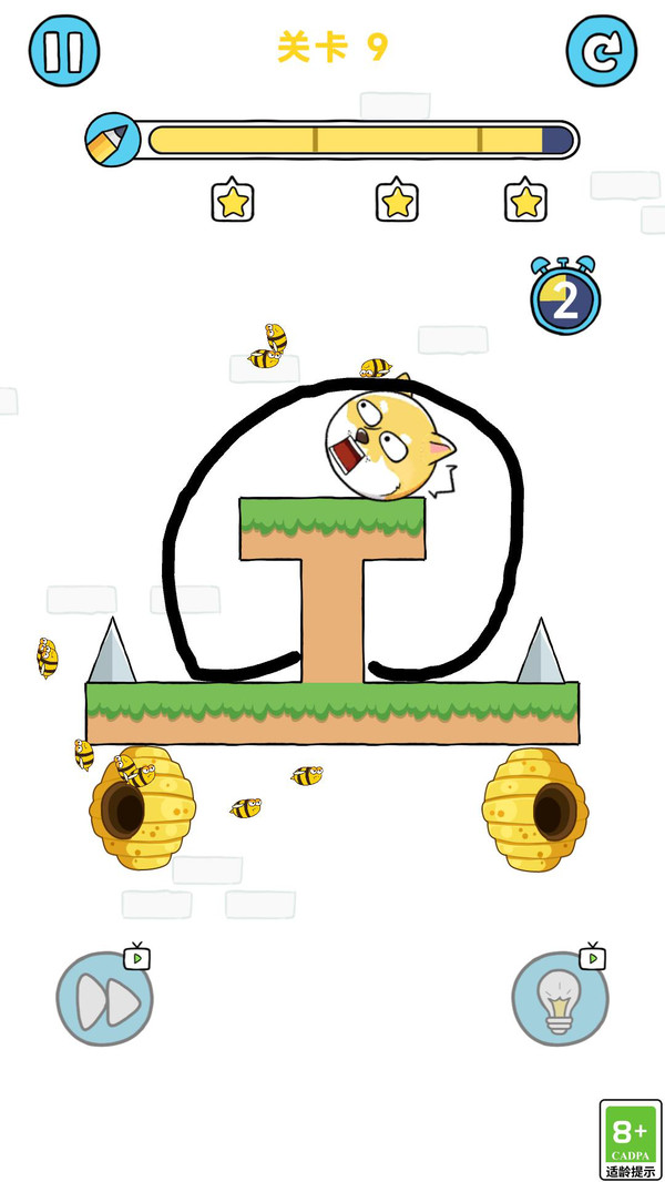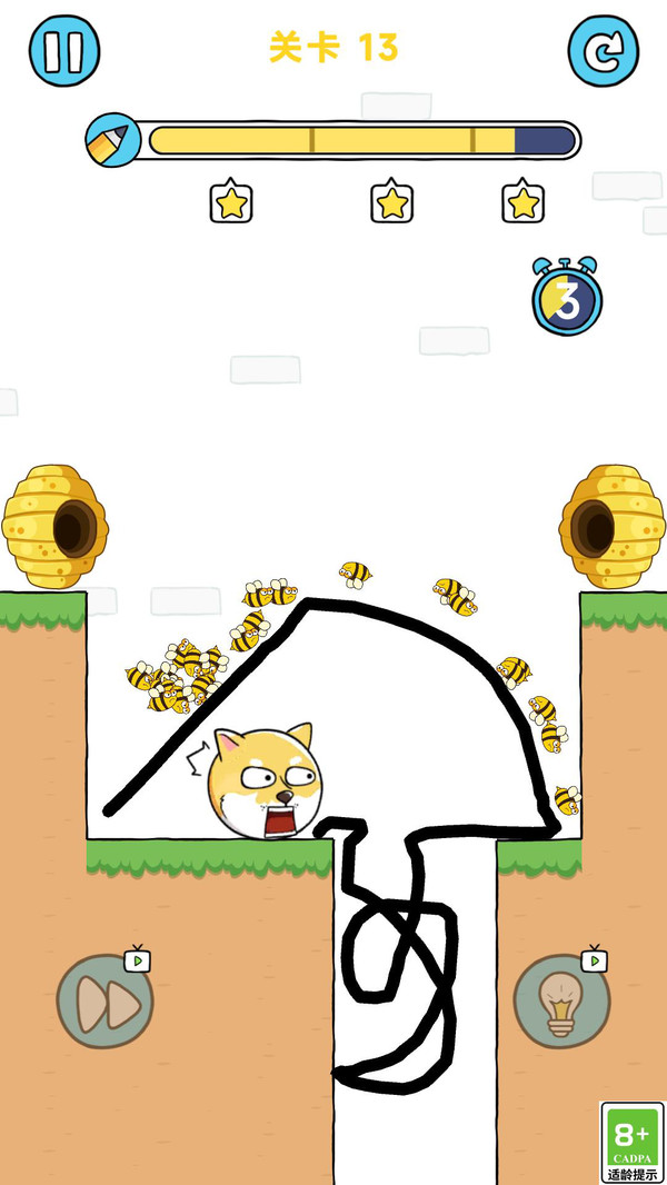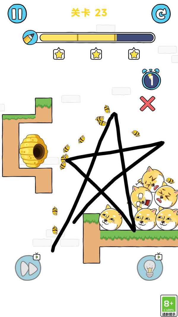 1、通过手指在屏幕中绘画线条,来保护你的狗狗不被蜜蜂攻击。