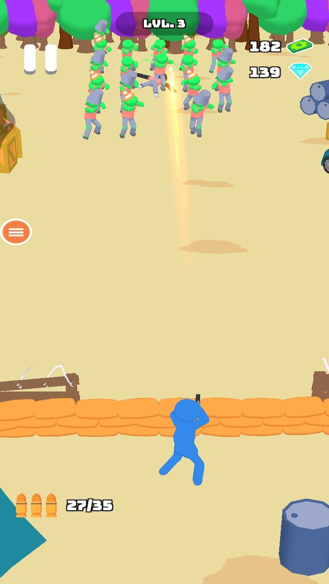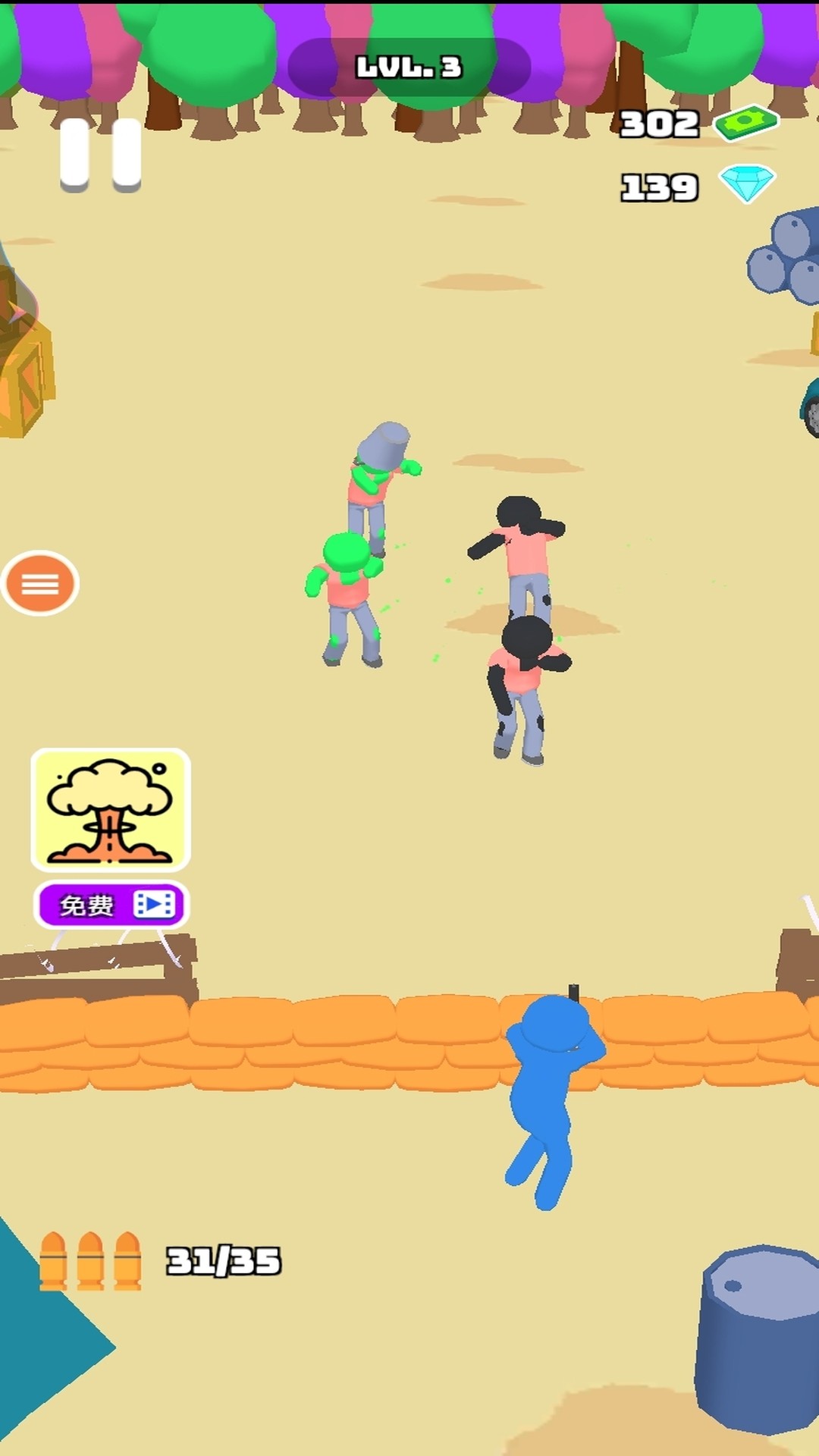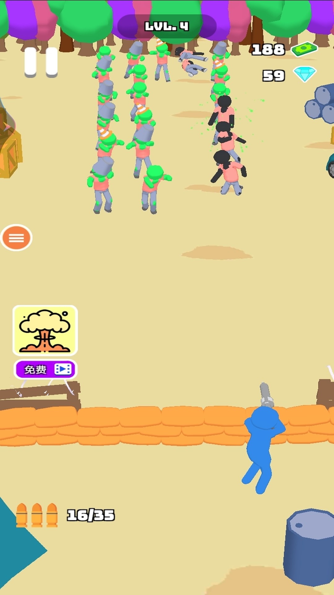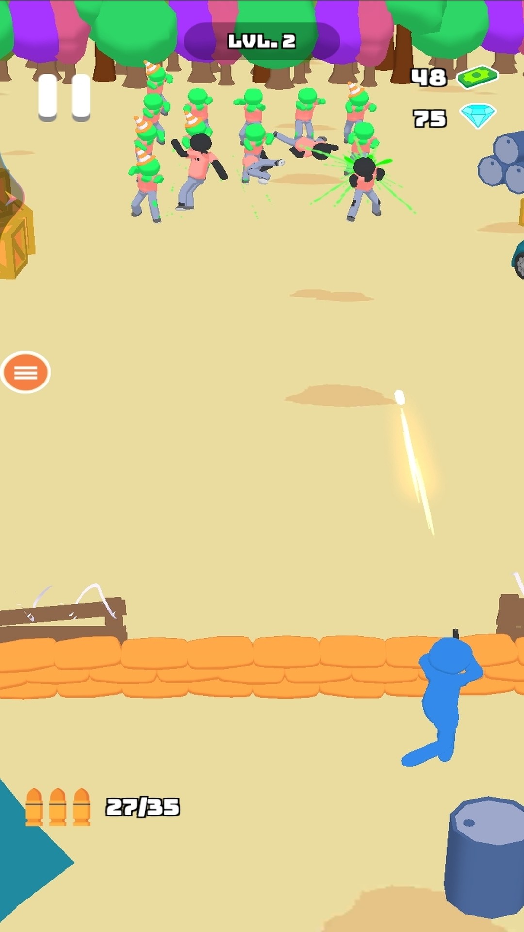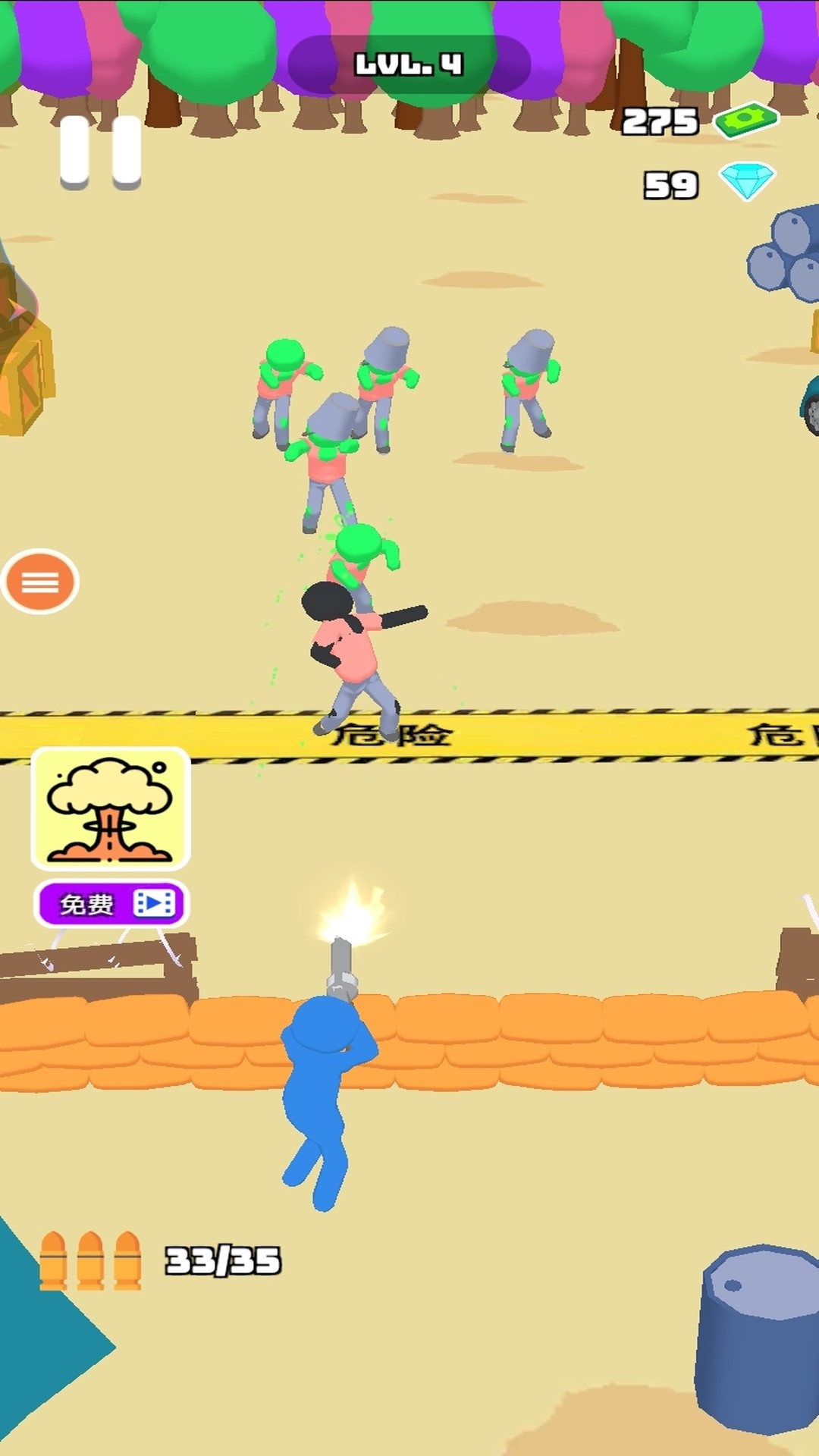 1、子弹拥有下坠和穿透效果。你可以击穿薄墙消灭后面的僵尸,打断吊桥绳索制造陷阱,或引爆油桶清场;