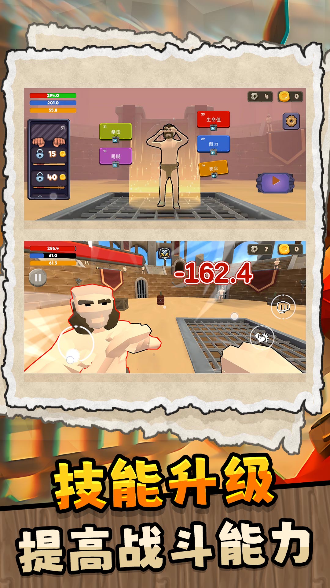 1、进入游戏,玩家将化身为角斗士,参与各种竞技活动,和不同的角斗士展开对战。