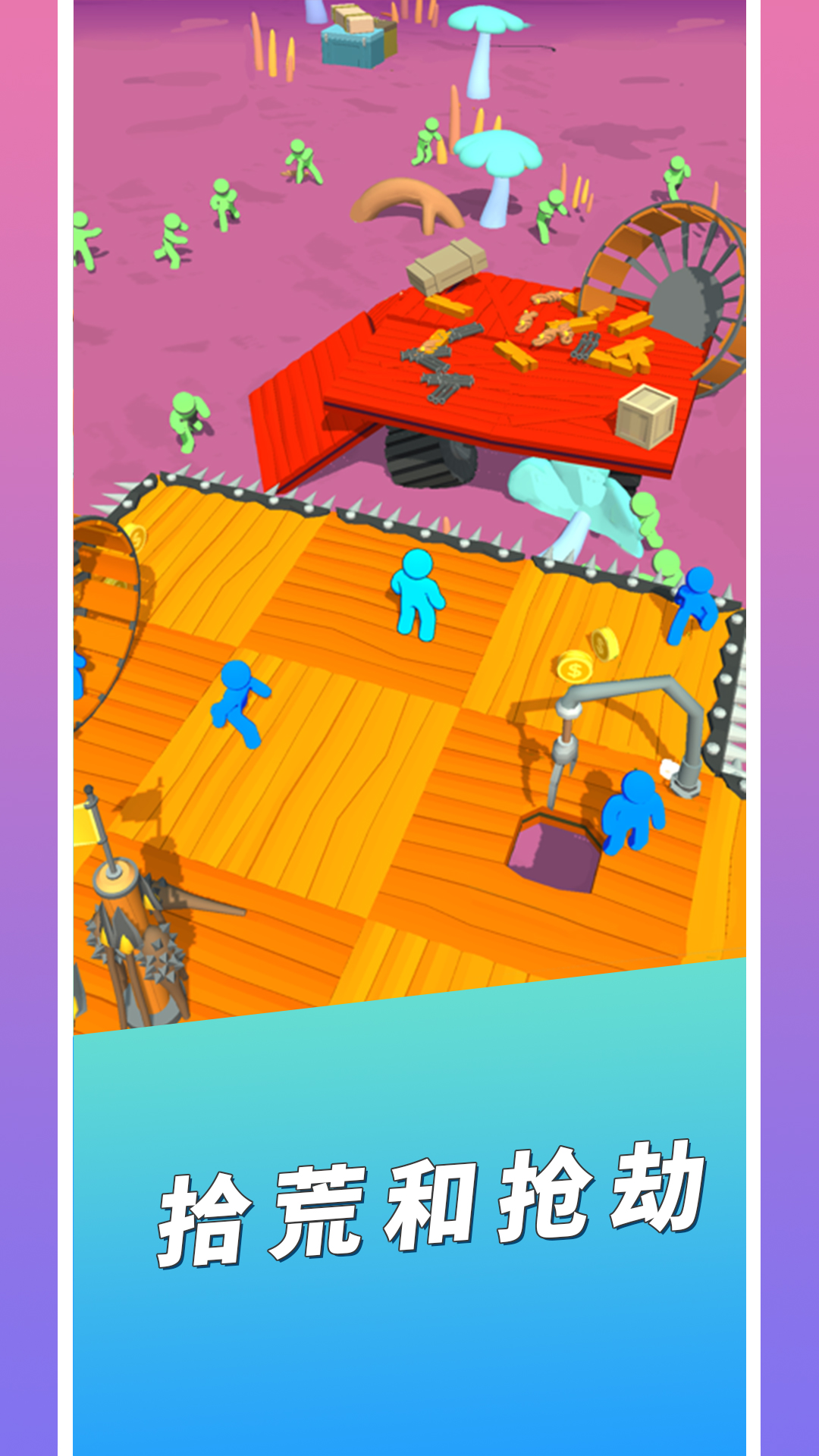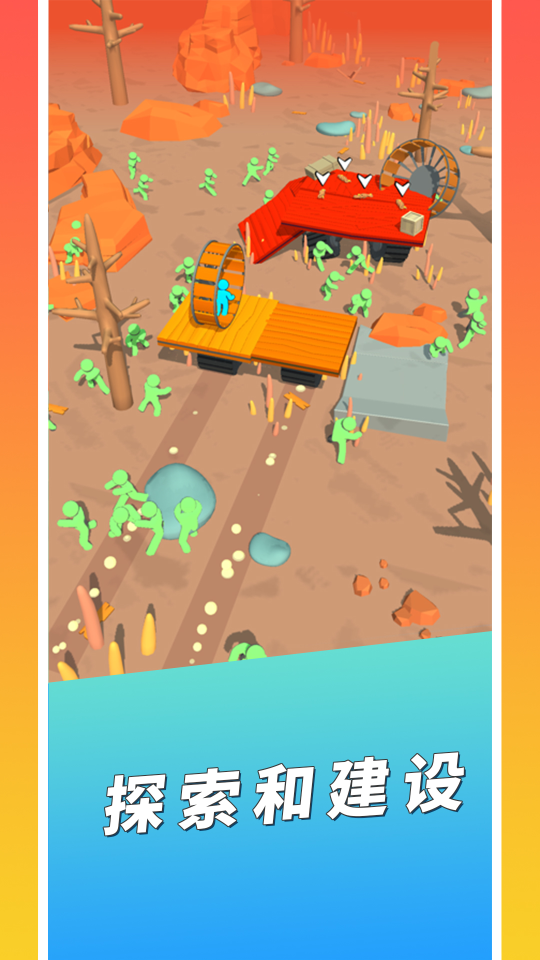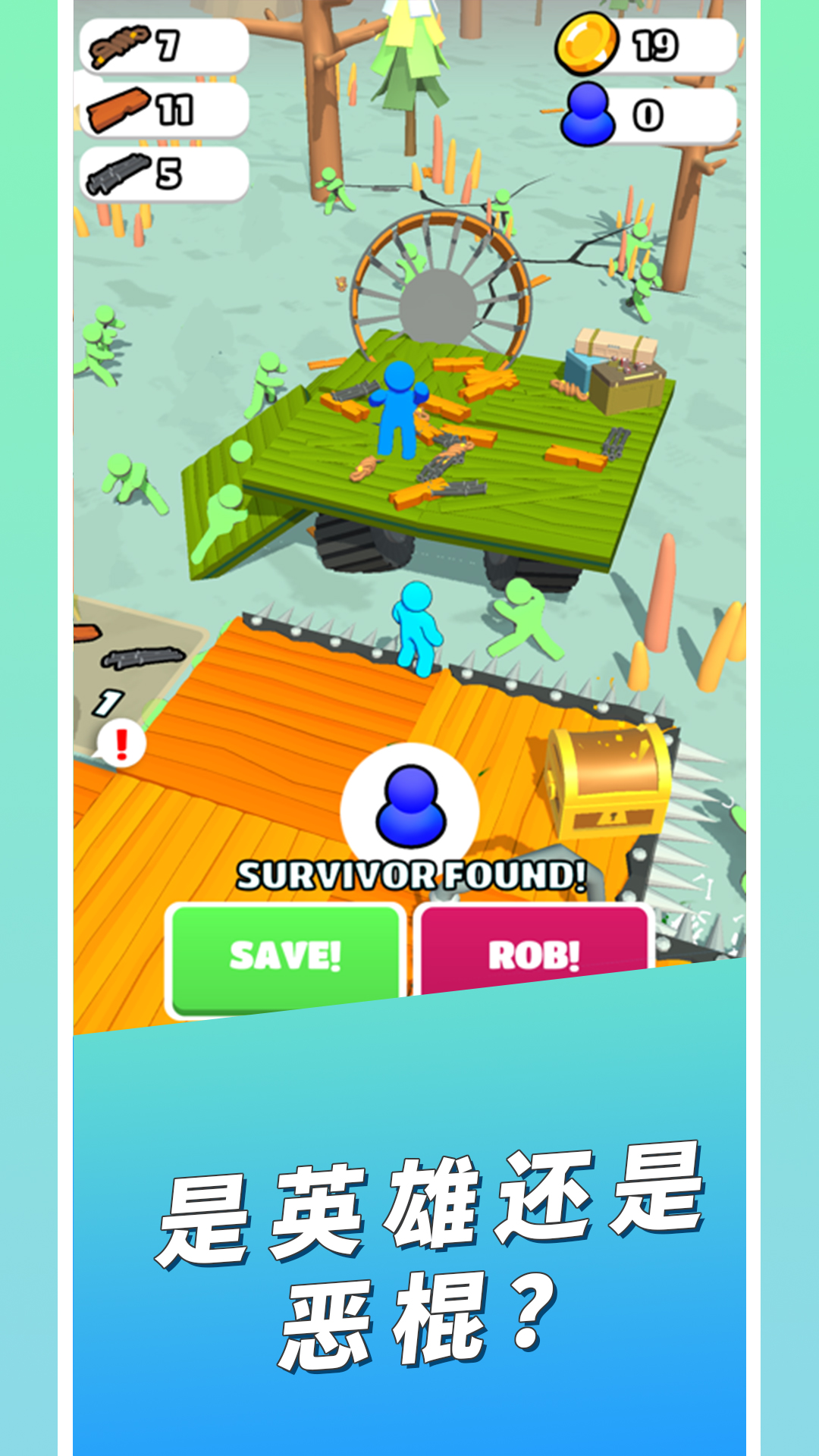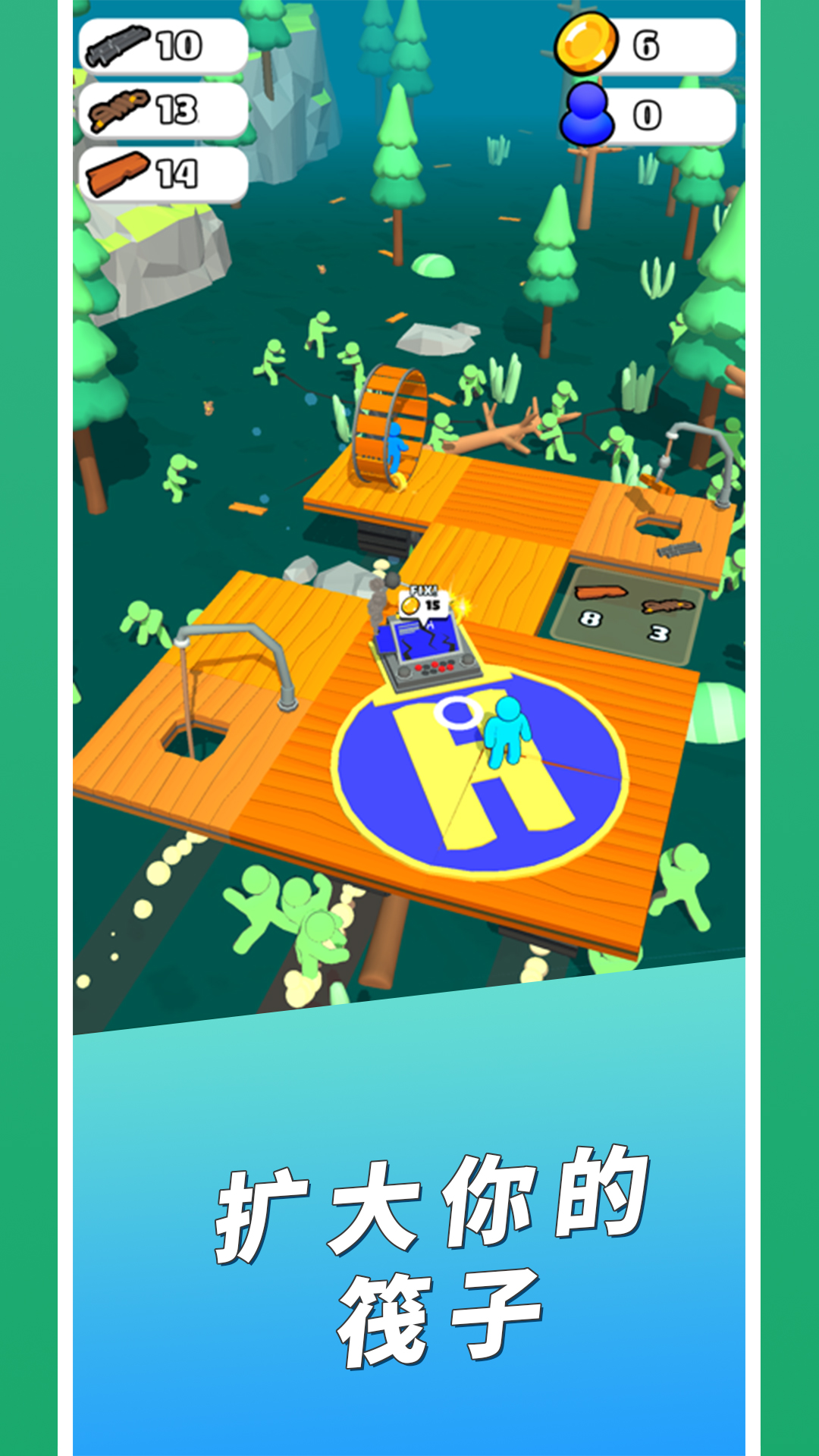 3、在移动的过程中解救其他的幸存者,调遣幸存者移动基地,玩家需要继续收集木头。