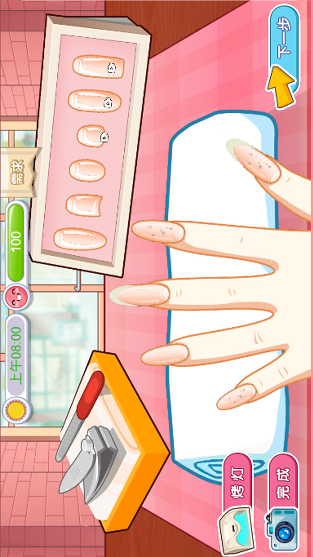 1、进入游戏,选择进入女神美甲店,开始修剪指甲;