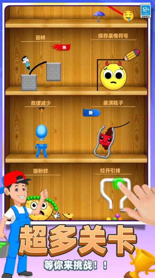 1、大量有趣的玩法,笑脸谜题,画桥,保存表情符号,都可以挑战。