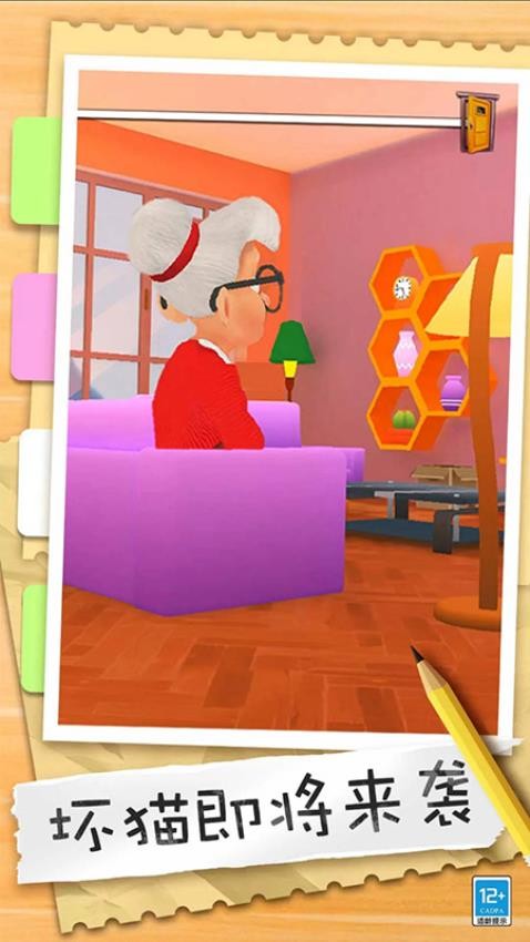 3、随着游戏进程,老奶奶的警戒模式和反应速度会逐渐提升,需要玩家不断优化捣乱策略和逃脱路线。