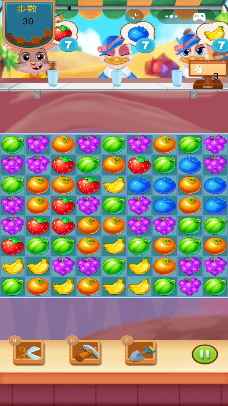 1、开启充满活力与欢快节奏的水果派对模式,逐渐掌握各种水果组合消除的规律与特殊技能释放的时机。