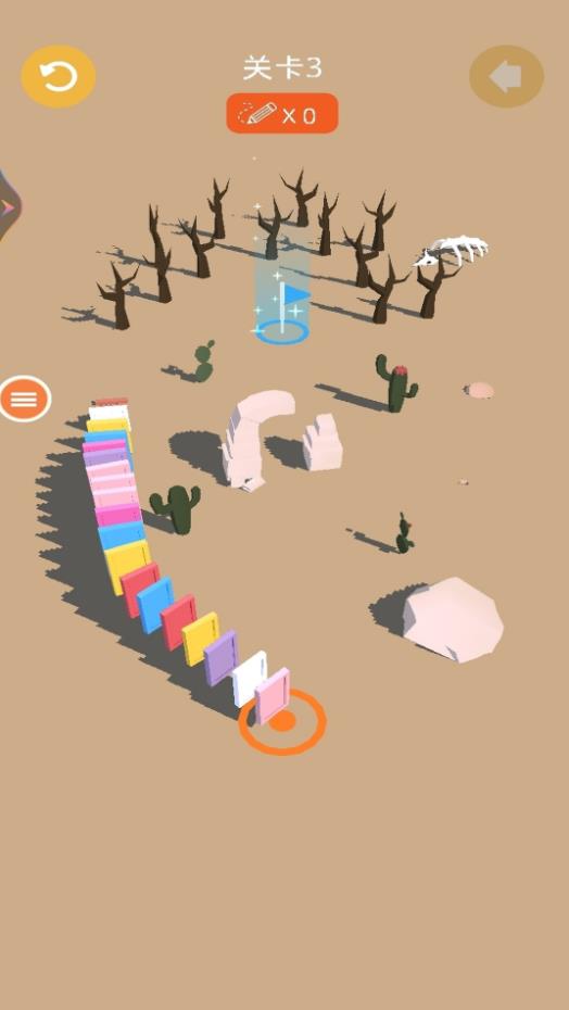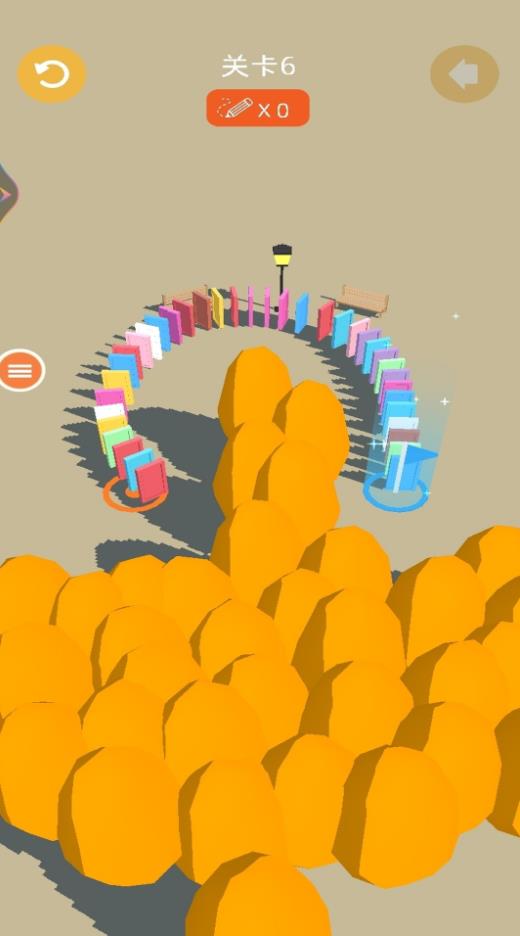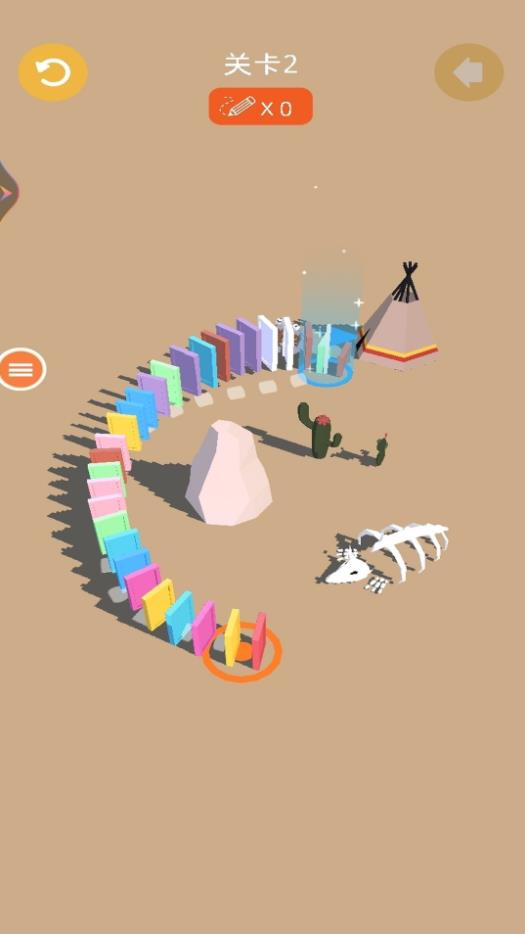 1、为骨牌规划精准路线,通过巧妙连线引导骨牌有序倾倒,每步选择都将影响最终通关效果。